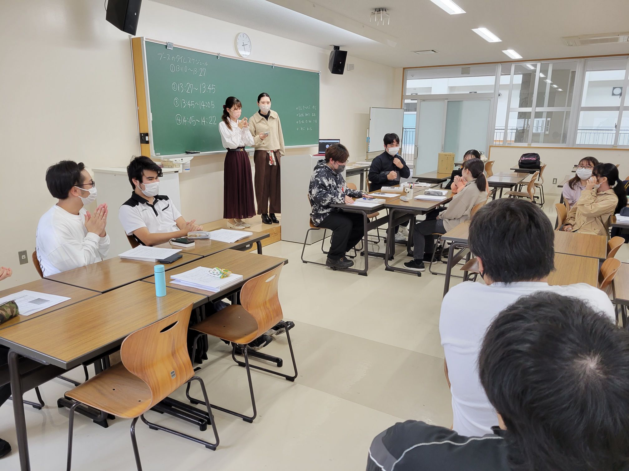 この日は、4年生から3年生へ、2年間の研究活動の集大成である卒論集の贈呈式が行われ、その後は、ブース形式で4年生による卒論の成果報告と、卒論執筆や進路決定に向けてのアドバイスが行われました。
