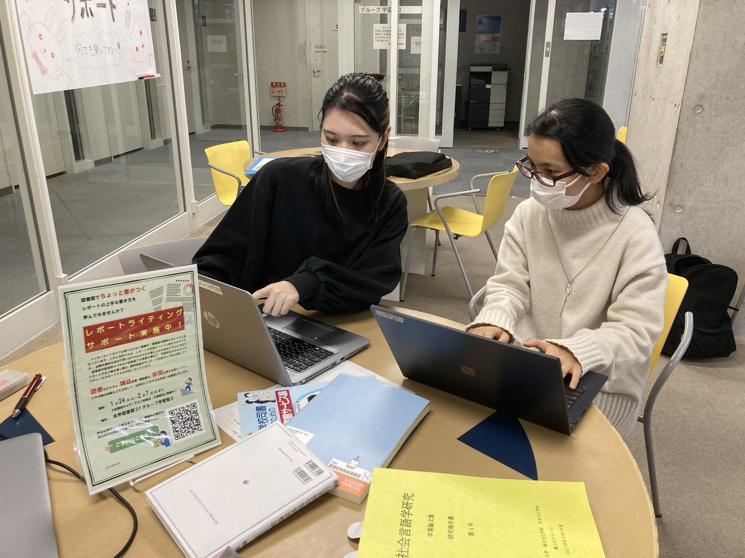 コロナ禍で3年振りの開催ということで、今年度のサポートは、1月下旬から2月上旬にかけて、図書館司書課程の4年生の代表3名が文献収集のサポートを中心に実施しました。