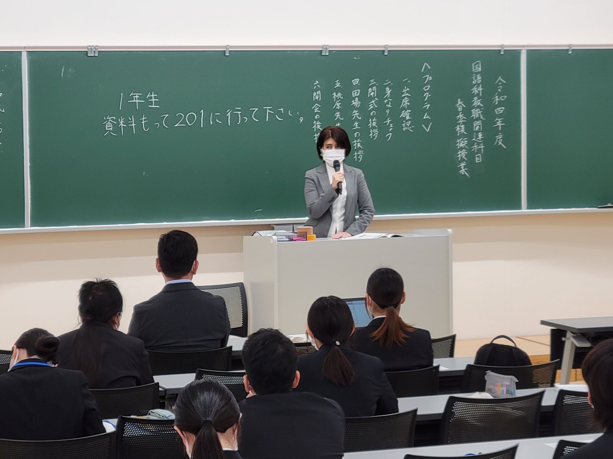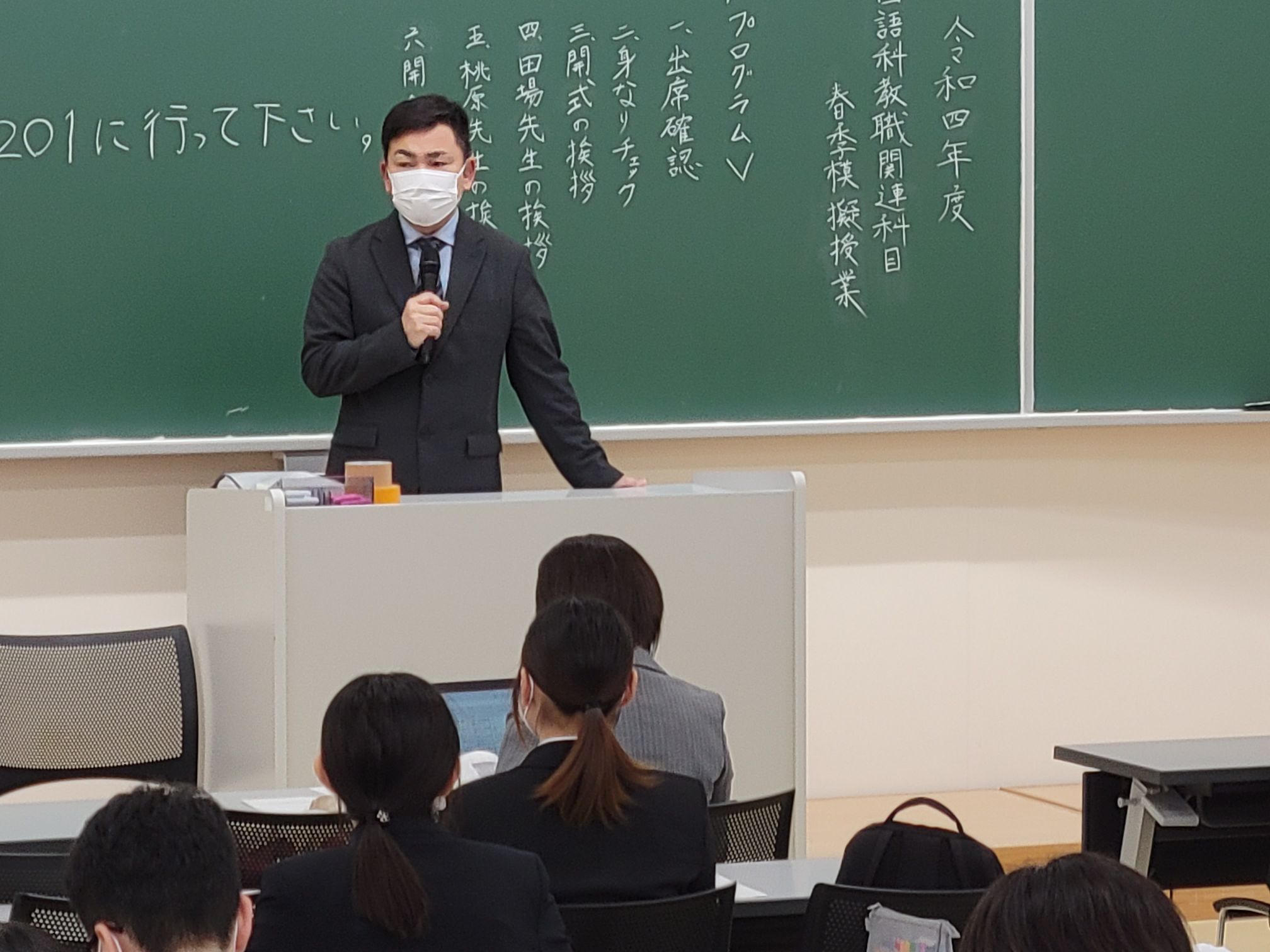 2月22日1時間目に開催された「開講式」では、教職課程担当教員である田場裕規先生と桃原千英子先生から次のようなご挨拶がありました。