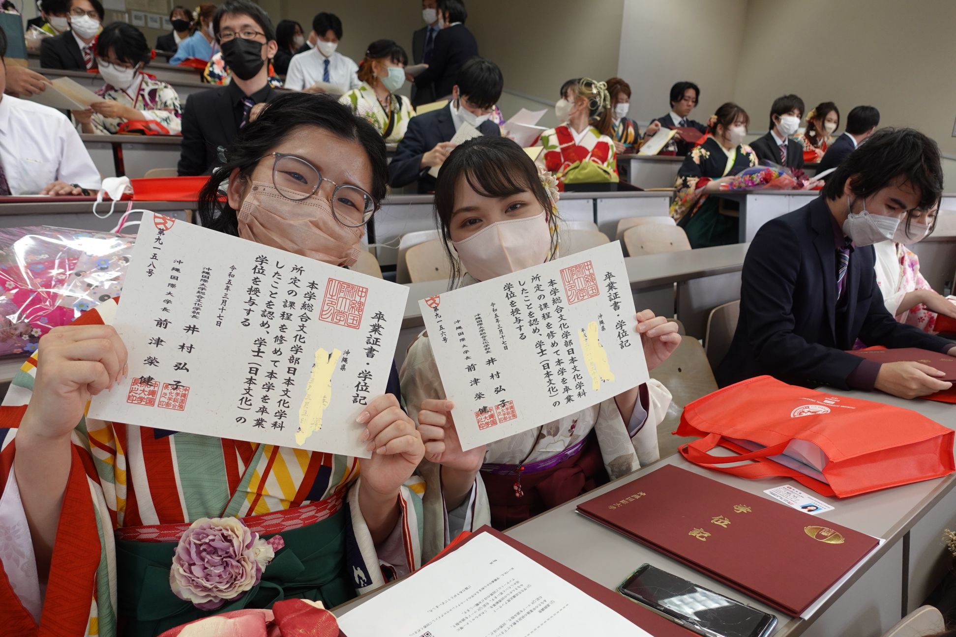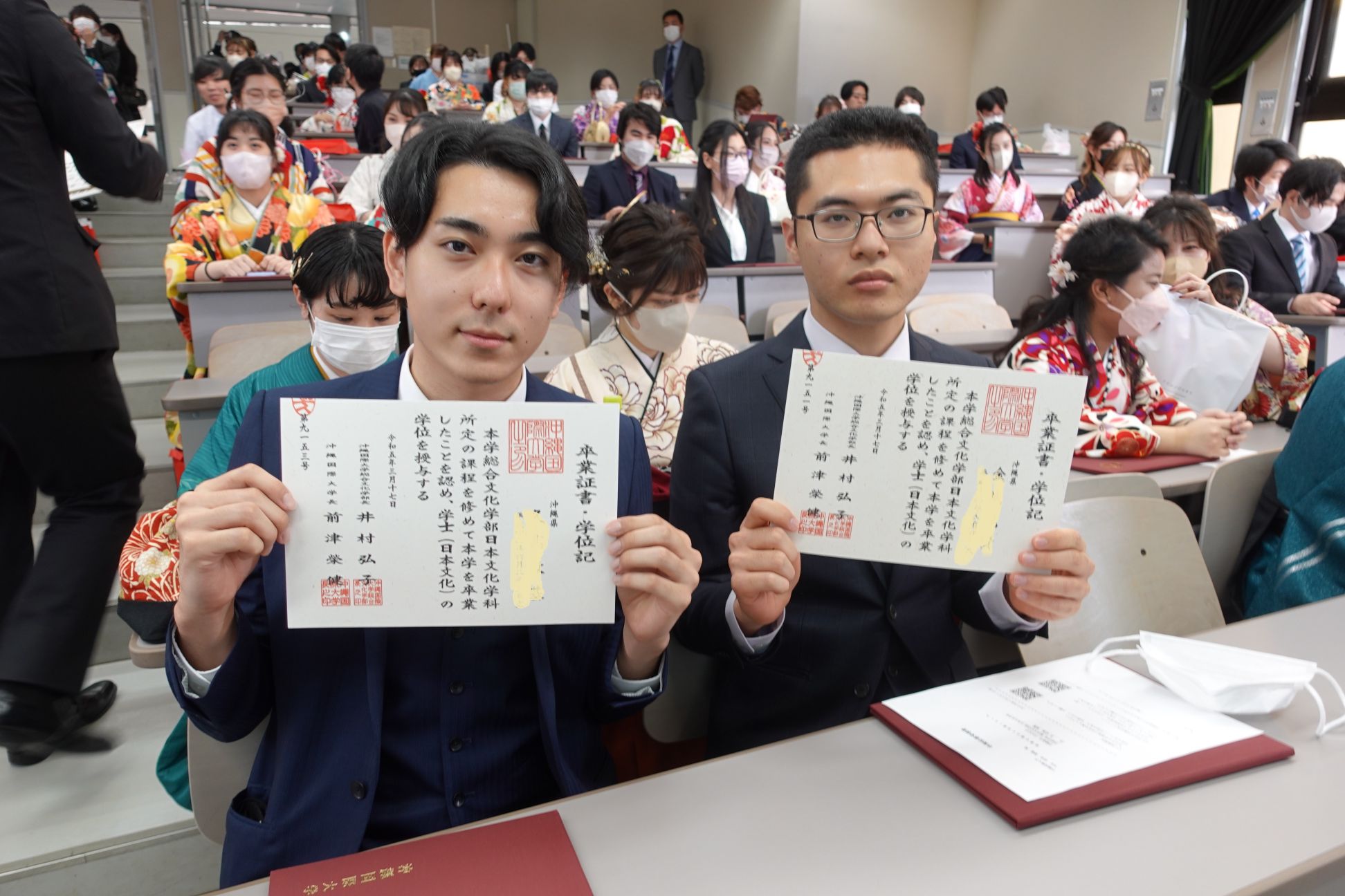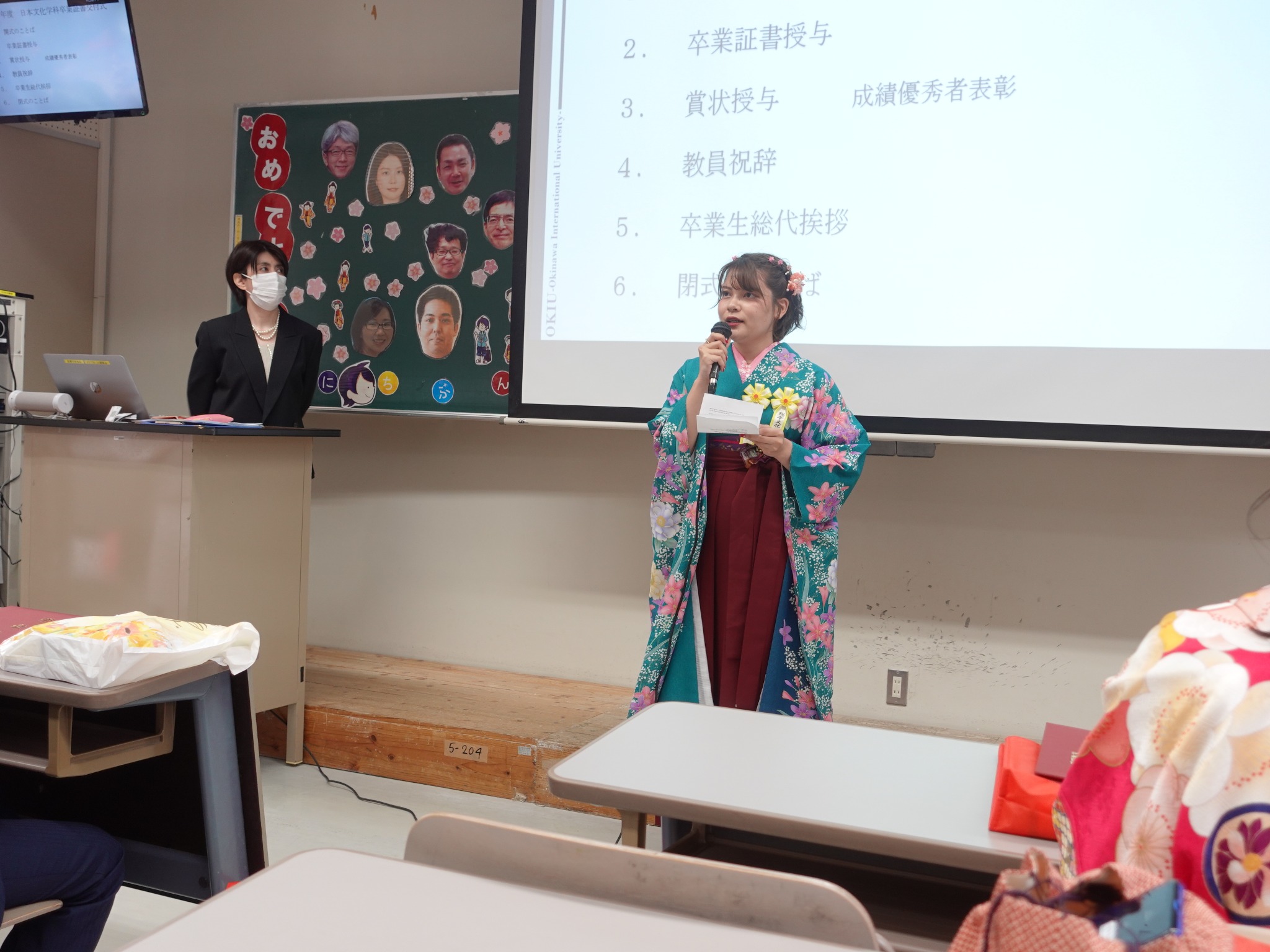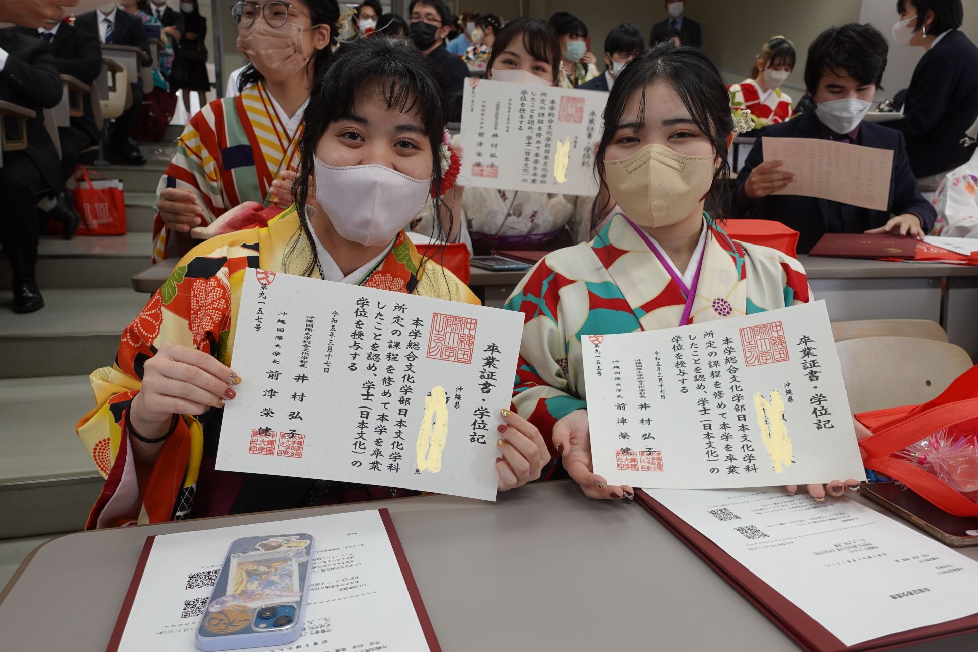 2023年3月17日、沖縄国際大学体育館兼講堂で卒業式が挙行され、式典終了後、5号館204教室にて、日本文化学科卒業証書授与式が開催されました。