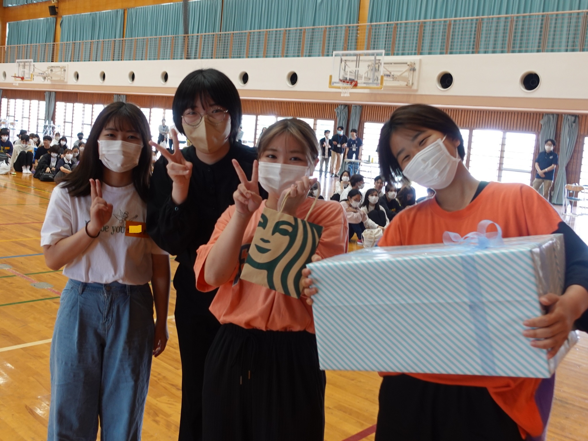 ゲームのあとは、上位チームの表彰式が行われ、上位6グループがお菓子の詰め合わせセットなどの賞品を受け取りました。