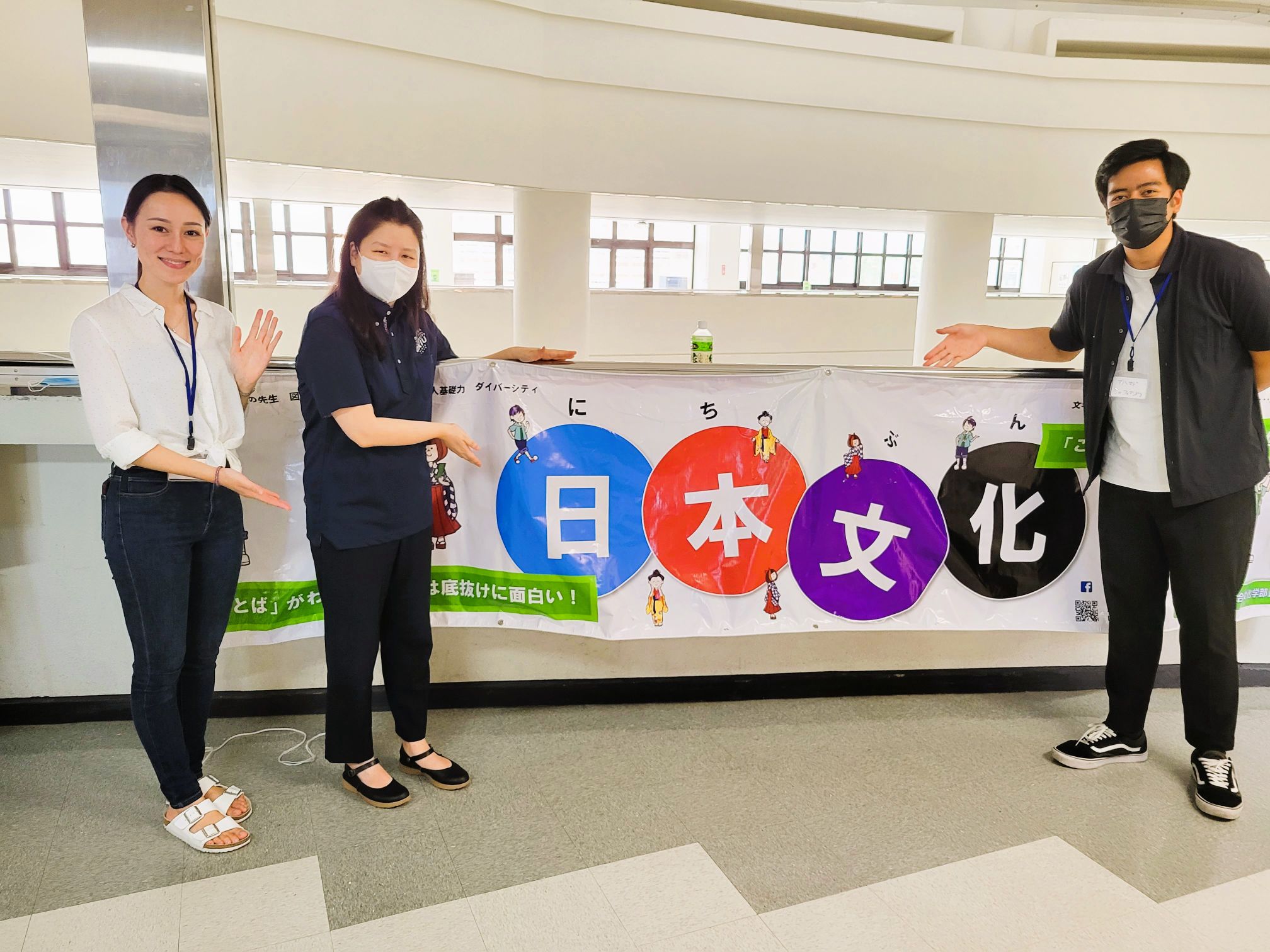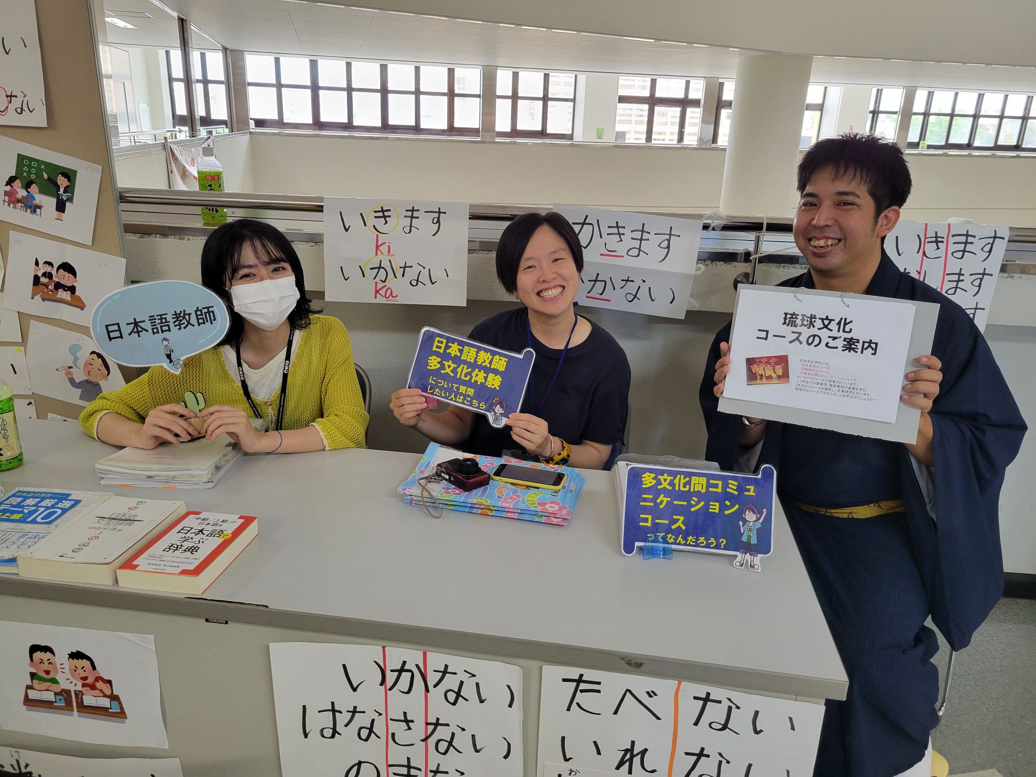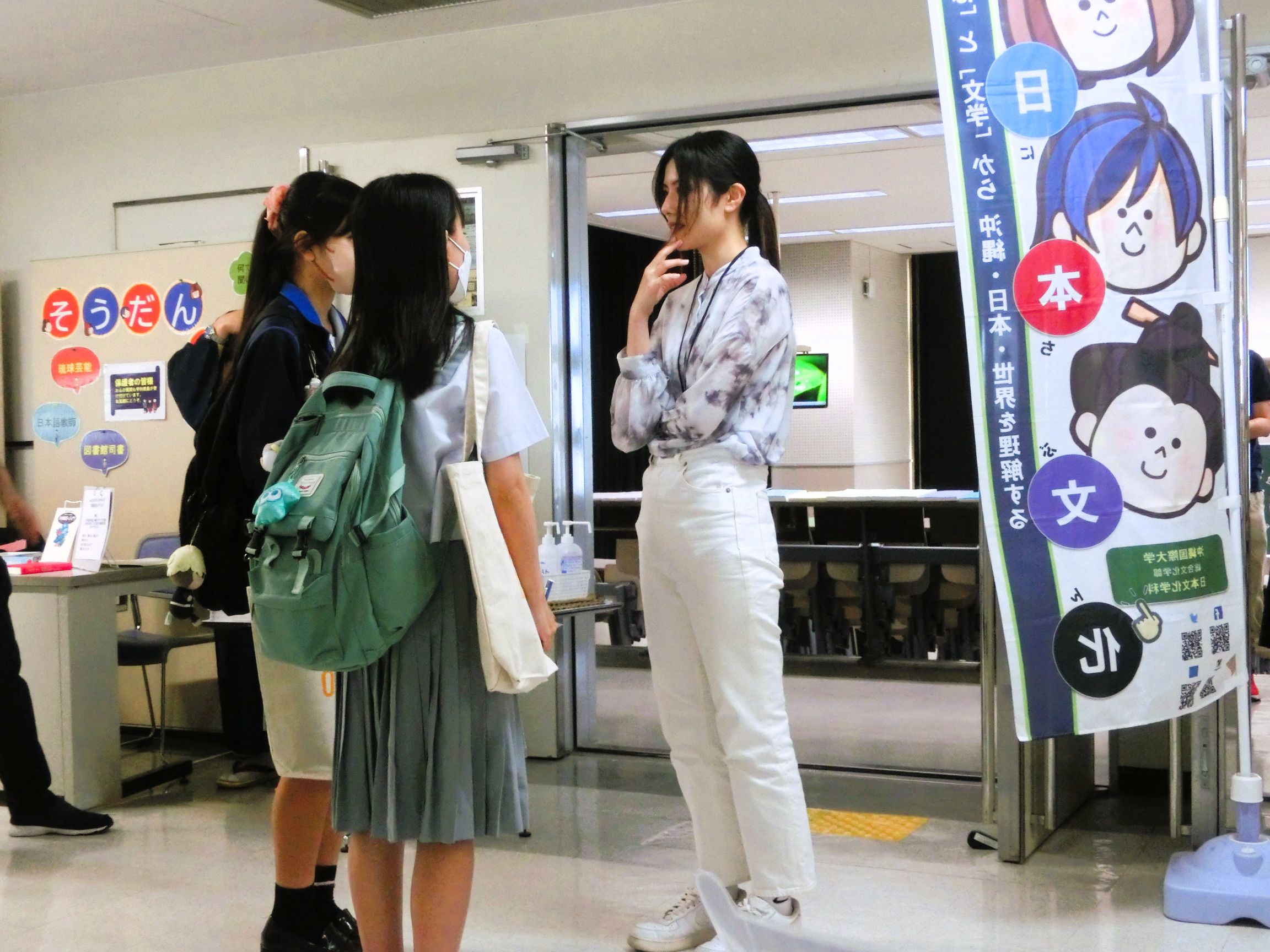 講座終了後は教室前のブースで、日文の先輩たちが受験生の皆さんからの質問も受け付けました。