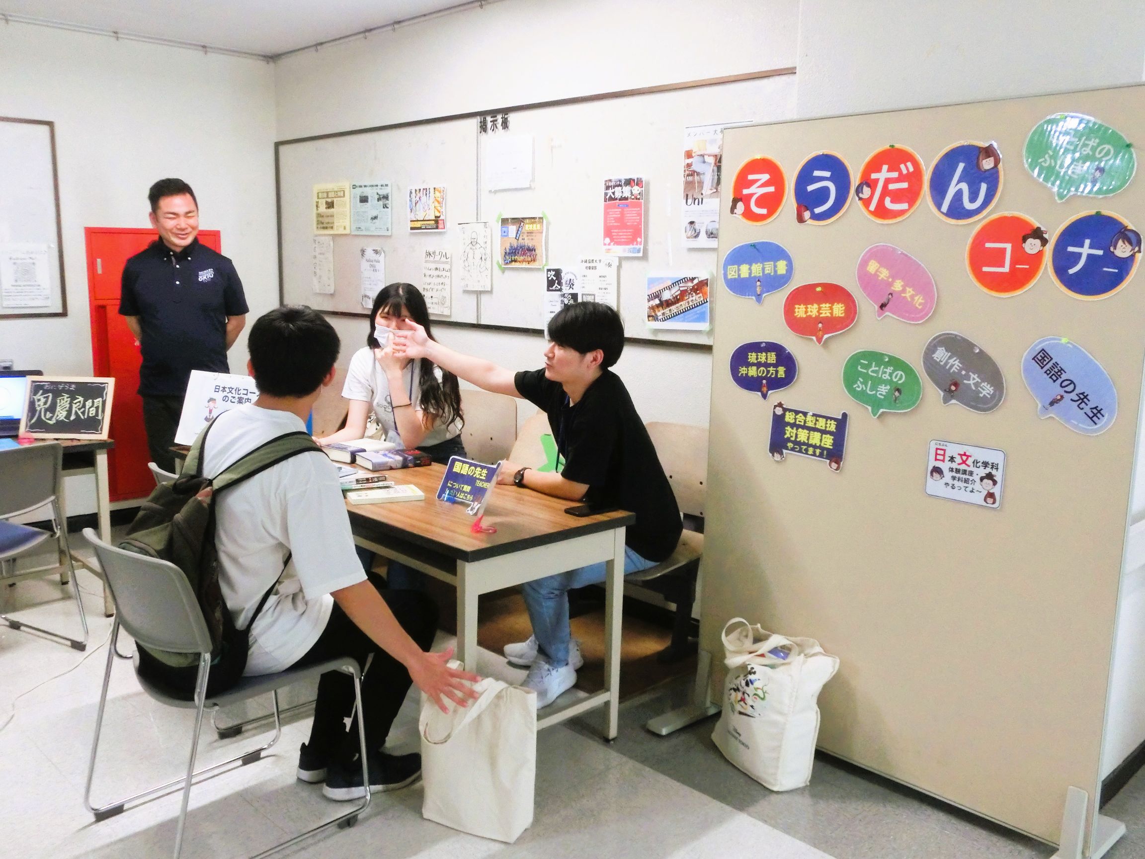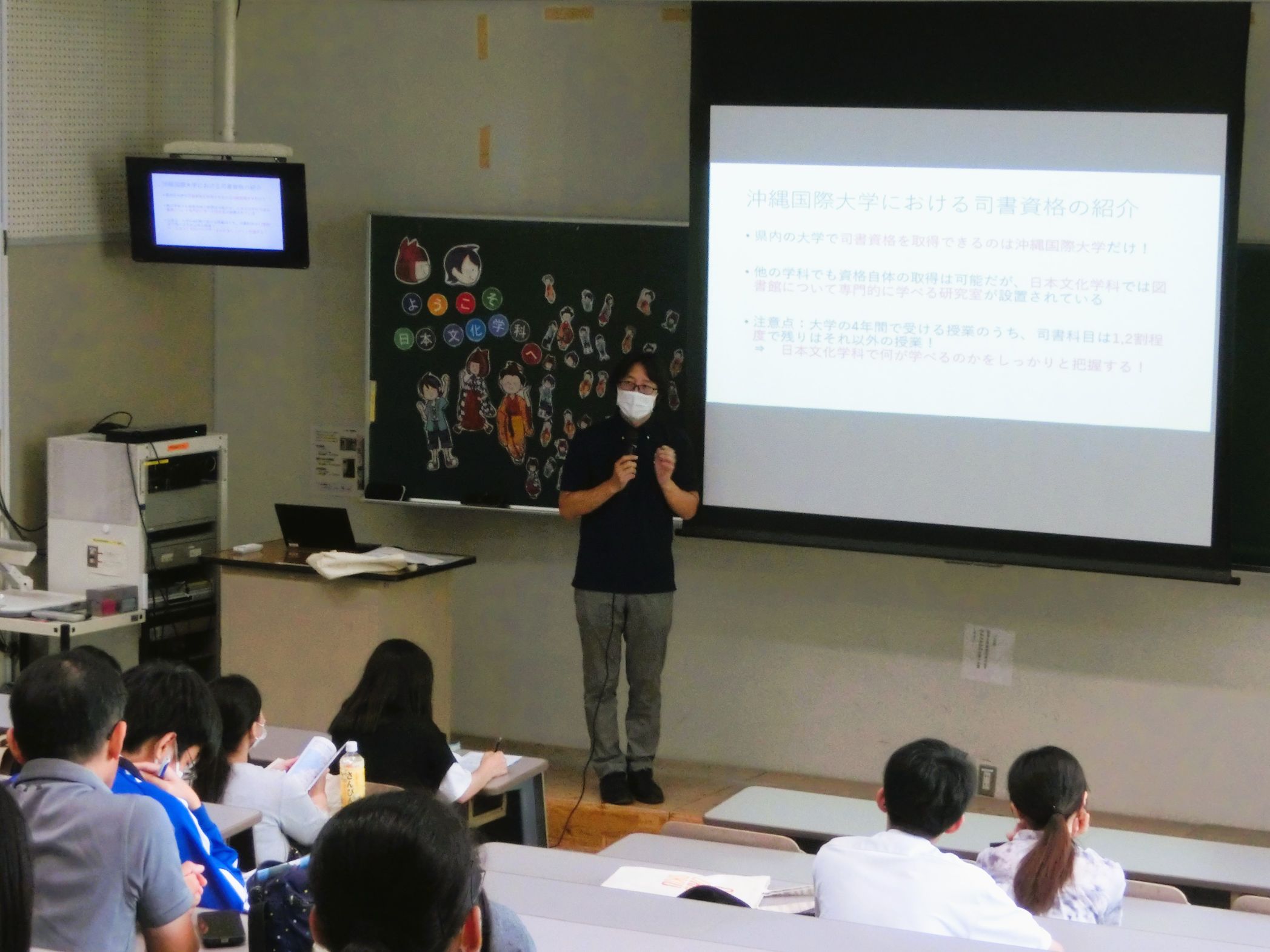 学科紹介後の体験講座は、我部大和先生による琉球文化体験講座(午前)と、名城邦孝先生による図書館司書解説講座(午後)が開催されました。