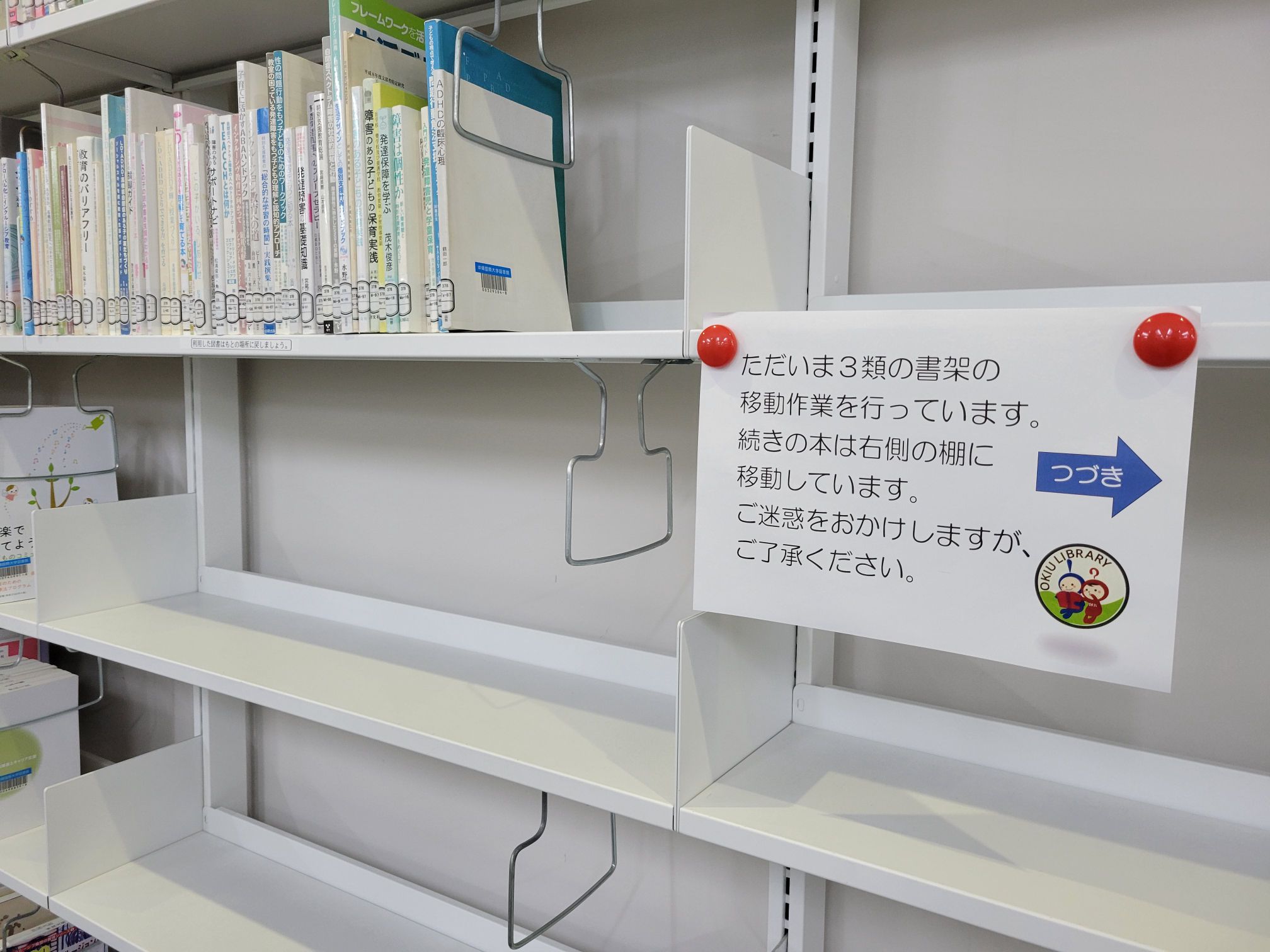 書架がつまっていると、日々の返本業務が難しくなるのはもちろん、利用者も本の場所が分かりにくくなって、本を戻すときに別の空いている場所になんとなく入れてしまう、という問題も起こってしまいます。