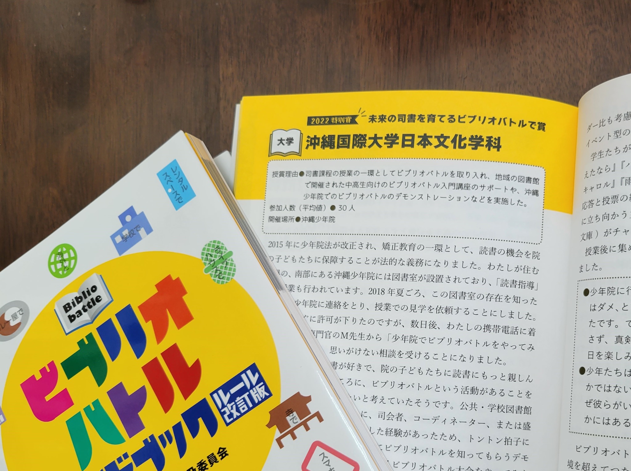 こうした日文司書課程の取り組みが評価され、2022年10月には、「Bibliobattle of the Year2022」の特別賞(未来の司書を育てるビブリオバトルで賞)を受賞しました。