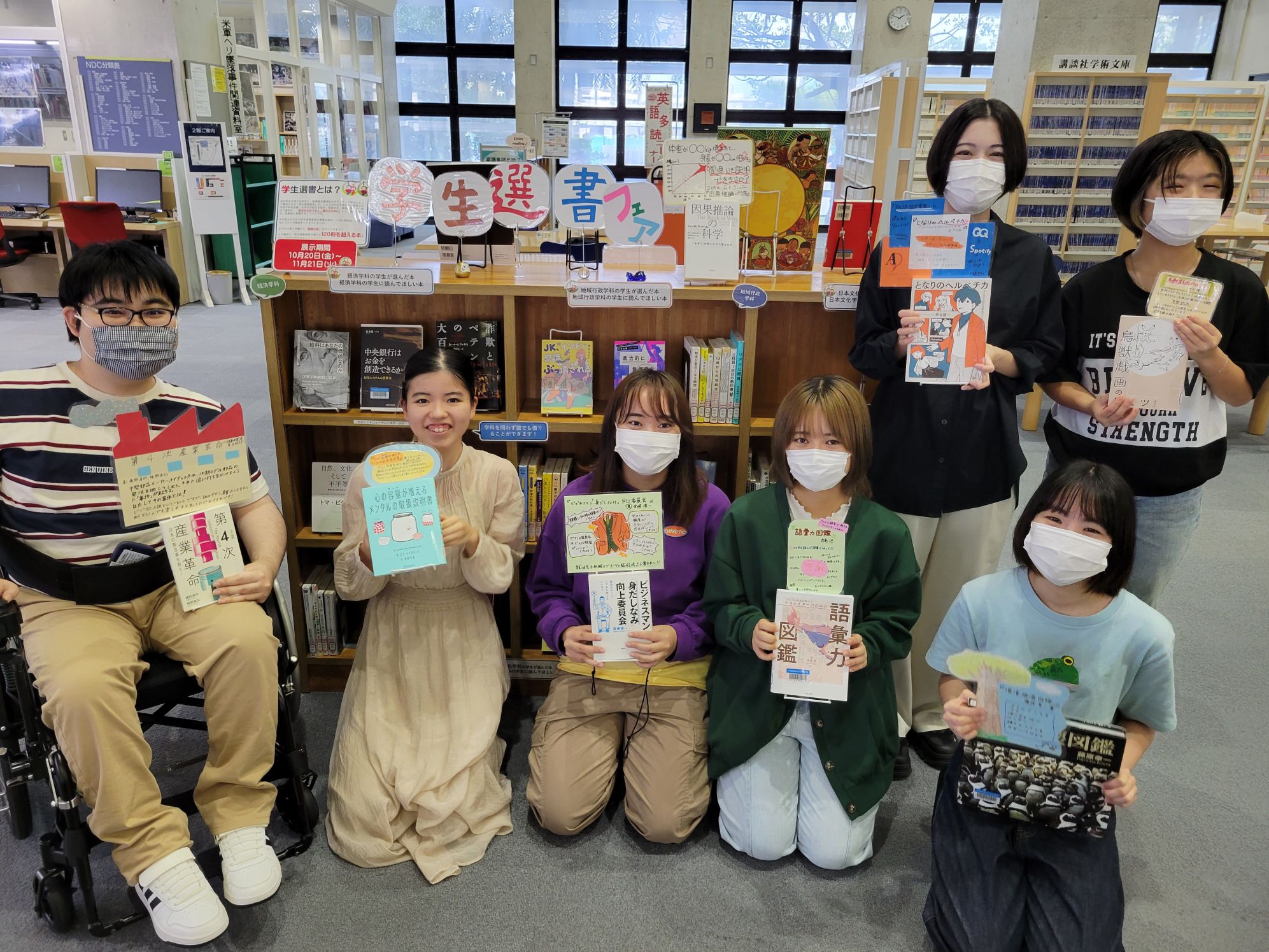 昨年度からは司書課程の学生のみなさんにもボランティアで参加してもらい、せっかくのイベントなので、ただ本を推薦してもらうだけでなく、「学生選書フェア」と題するコーナーづくりを行ってもらっています。