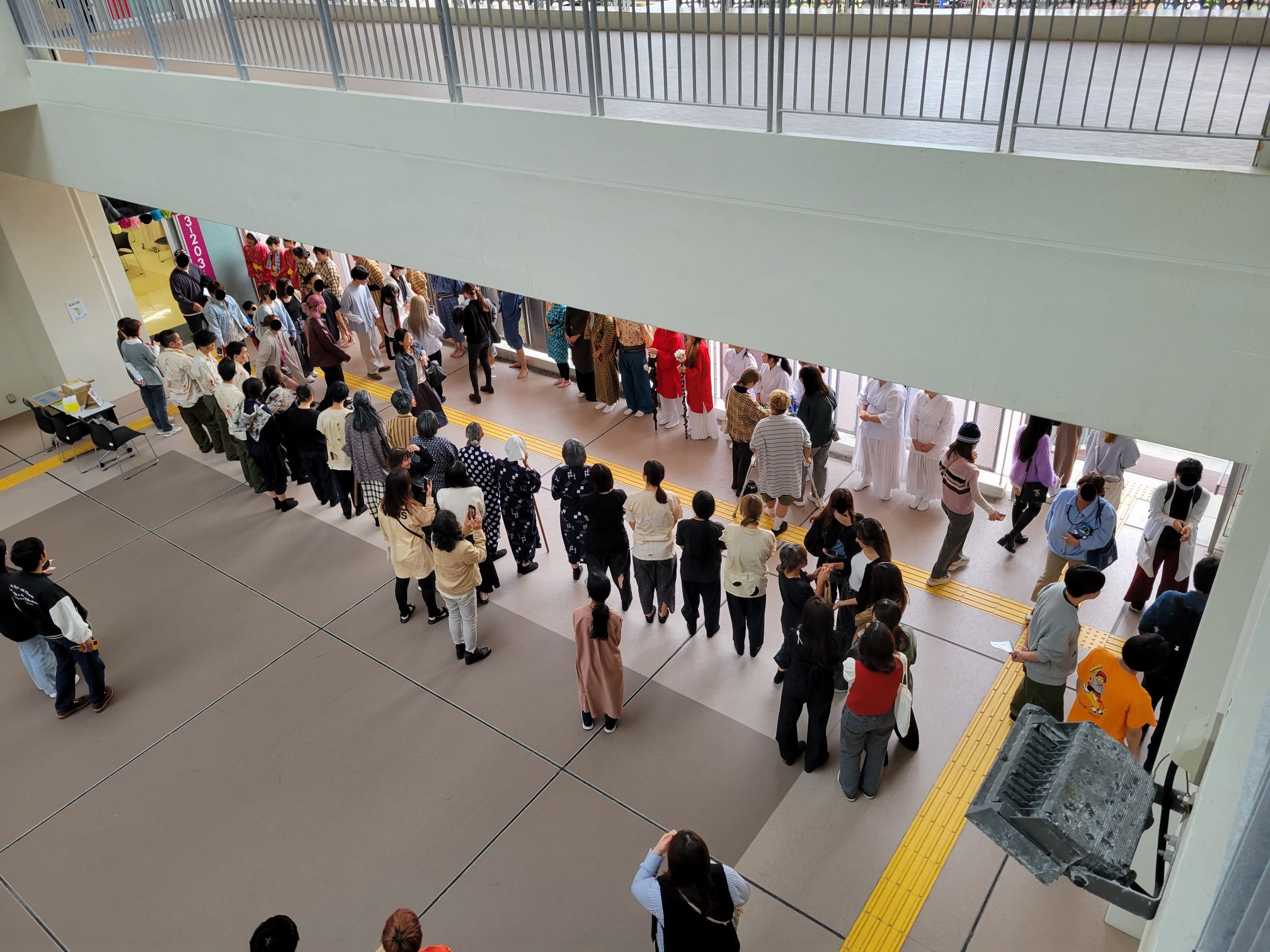 2023年11月25日・26日に開催された沖縄国際大学大学祭にて、日本文化学科新入生が一丸となって取り組む舞台演劇「民話劇・鬼慶良間」が上演されました。今年度も会場には座席が足りなくなるくらいのたくさんの方々にご来場いただきました。