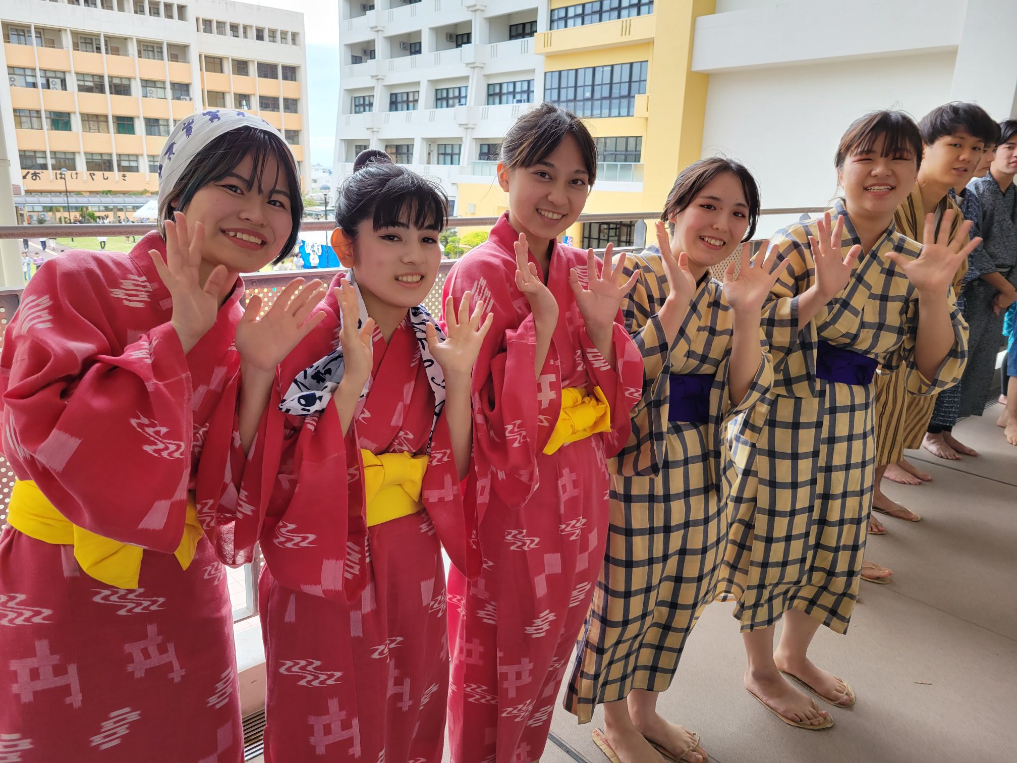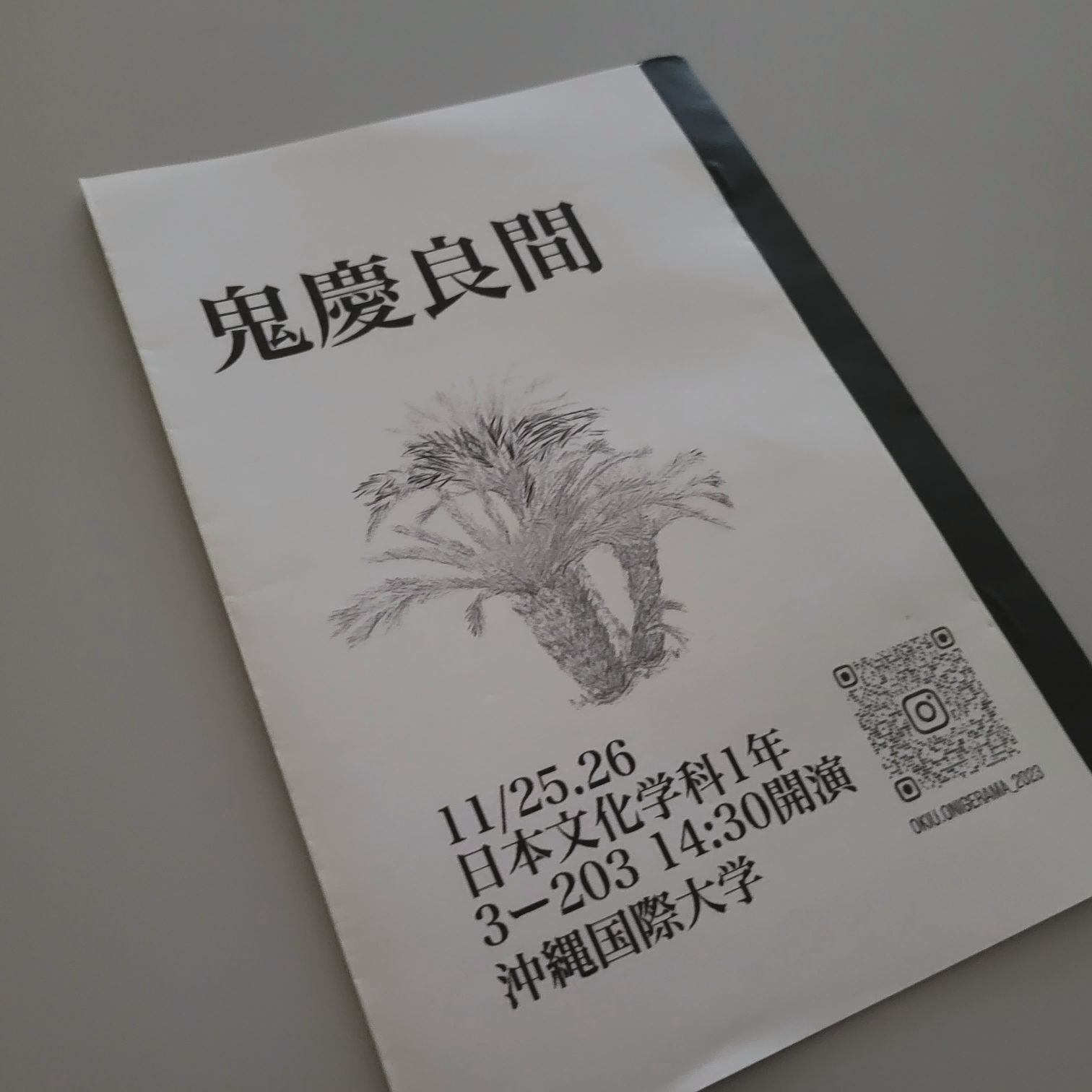 この舞台は、フリーアナウンサーとしても活躍されている佐渡山美智子先生のご指導の下、故・遠藤庄治先生の台本を受け継ぎ、1991年ごろから30年以上も続く日本文化学科の(沖縄国際大学大学祭の?)伝統行事になっています。