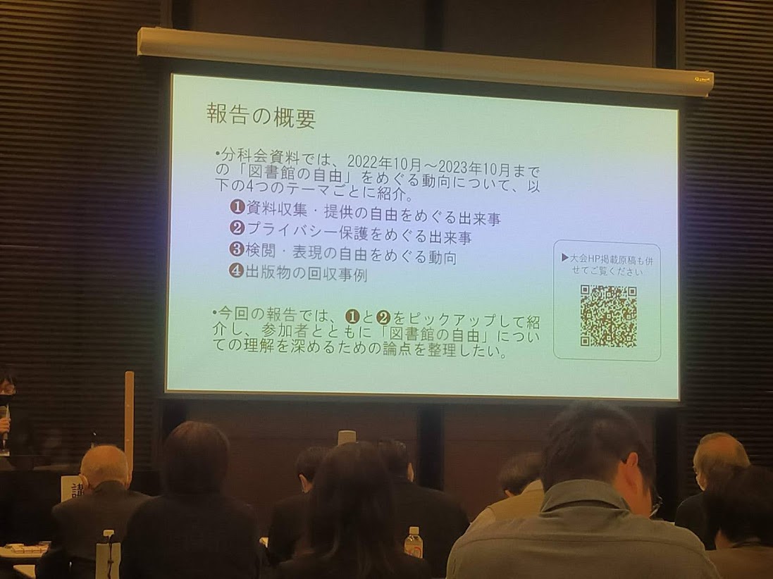 報告テーマは「図書館の自由・この1年」。