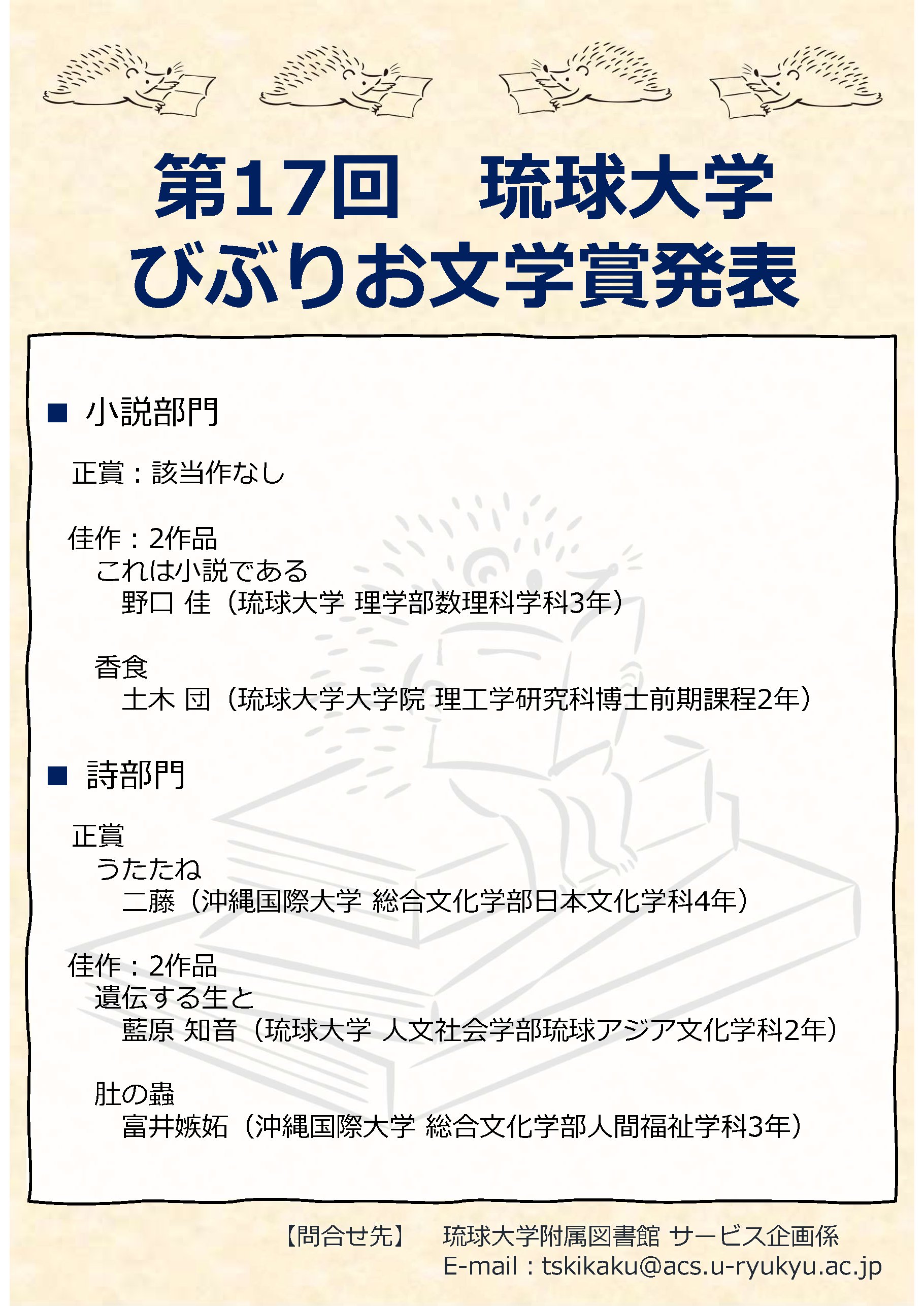【琉球大学附属図書館主催「びぶりお文学賞」に日文生が入賞しました!】
