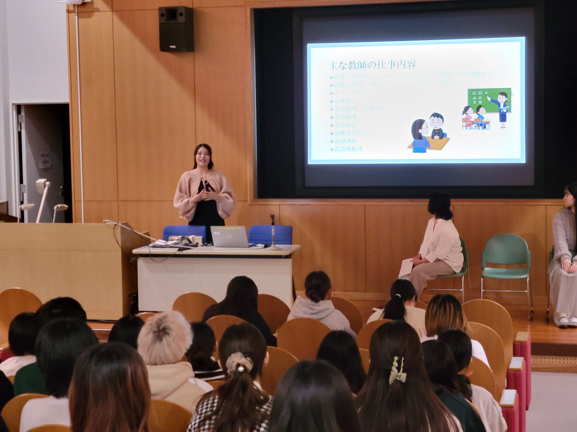 「採用試験の勉強が大変で、モチベーションが下がりそうになることもあったけど、採用試験に合格することだけを目標にしていたら勉強は続かないと思う。自分がその仕事についたらどんなことをしたいか、こんな先生になりたい、司書になりたい、という、試験の先にある目標を持つことが大切」