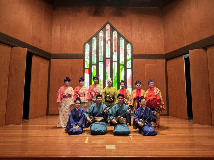 日本文化学科で国語科教員養成の授業を担当している田場裕規先生が顧問を務め、琉球文化コースの授業やゼミを担当している我部大和先生が副顧問を務める「琉球芸能文学研究会」のみなさんが、2024年1月7日、兵庫県多可町において特別公演を行いました!
