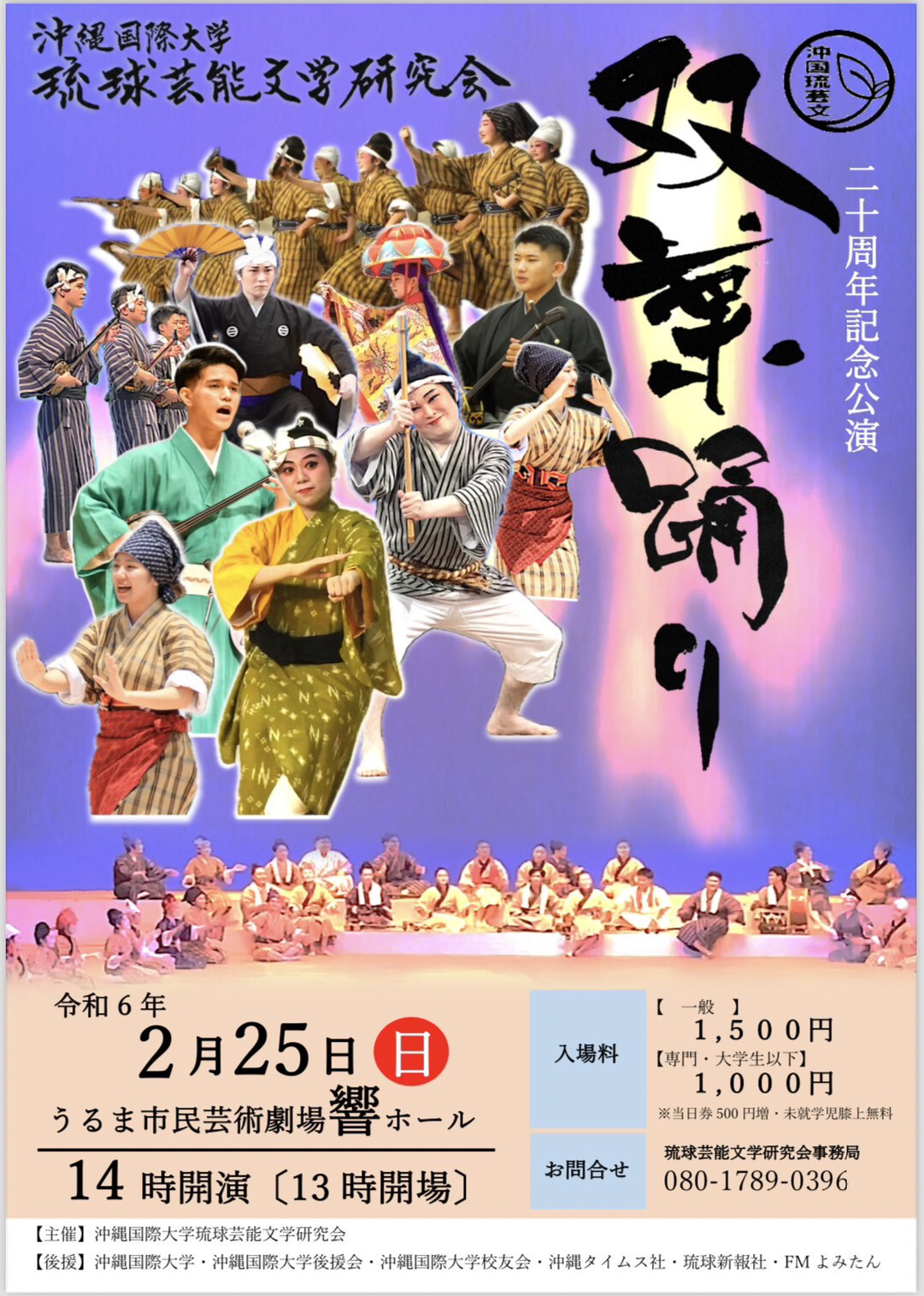 日本文化学科の学生も多く所属し、日本文化学科の田場先生が顧問を、我部先生が副顧問を務めておられる琉球芸能文学研究会の定期公演「双葉踊り(ふたふぁうどぅい)」が今年も開催されます!