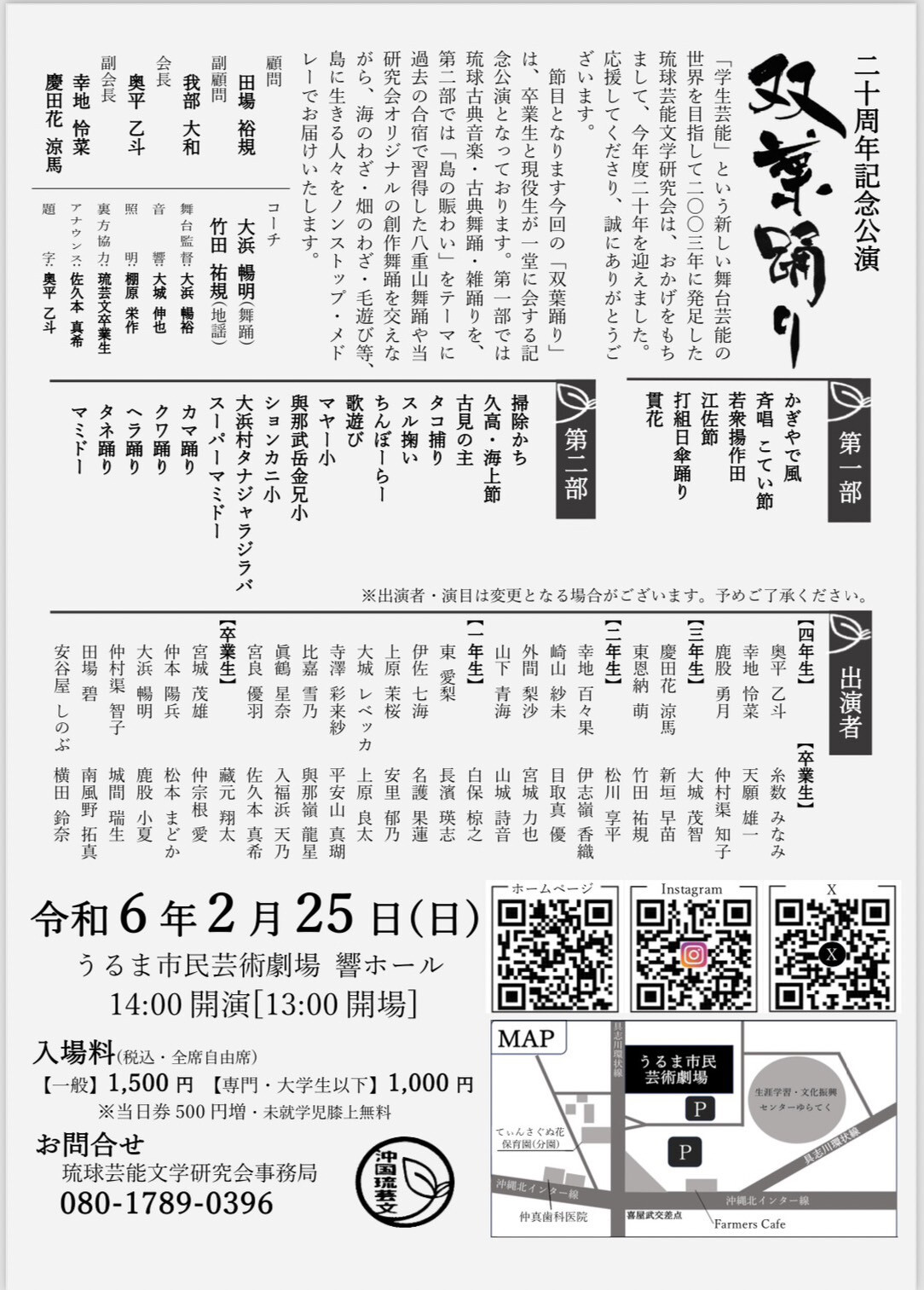 【琉球芸能文学研究会20周年記念公演「双葉踊り」が開催されます!】