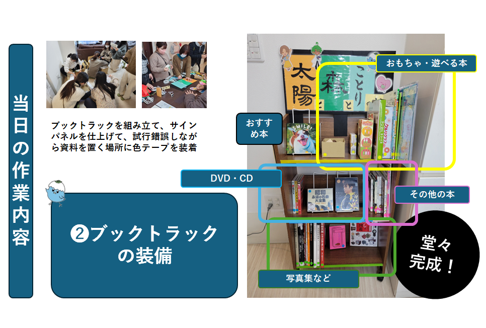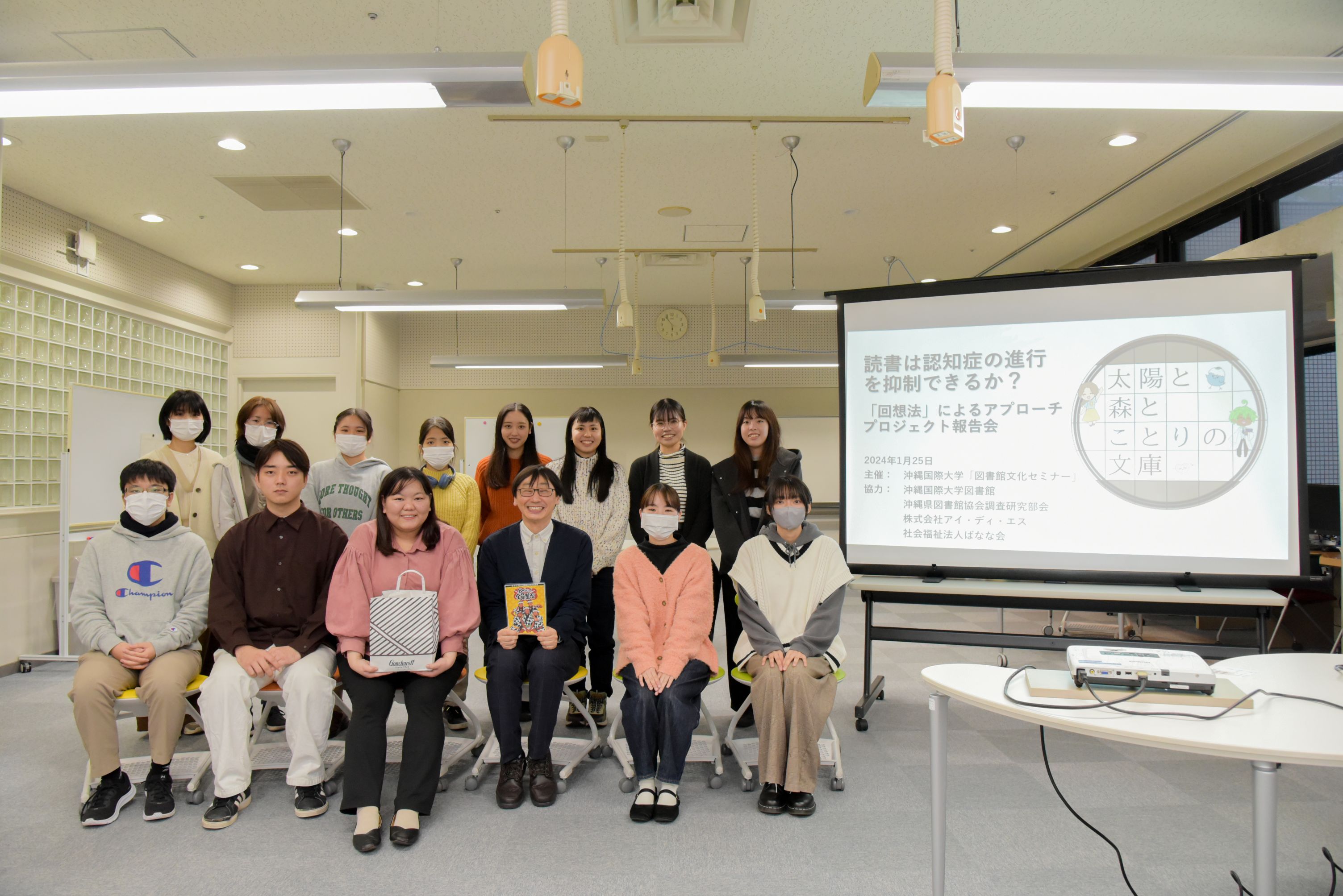 2023年11月27日、神奈川県川崎市にあるのんびりーす等々力という高齢者施設を訪問して「文庫」づくりを行い、2024年1月25日に、沖縄国際大学図書館4Fのラーニングコモンズにて、その活動報告会を開催しました。