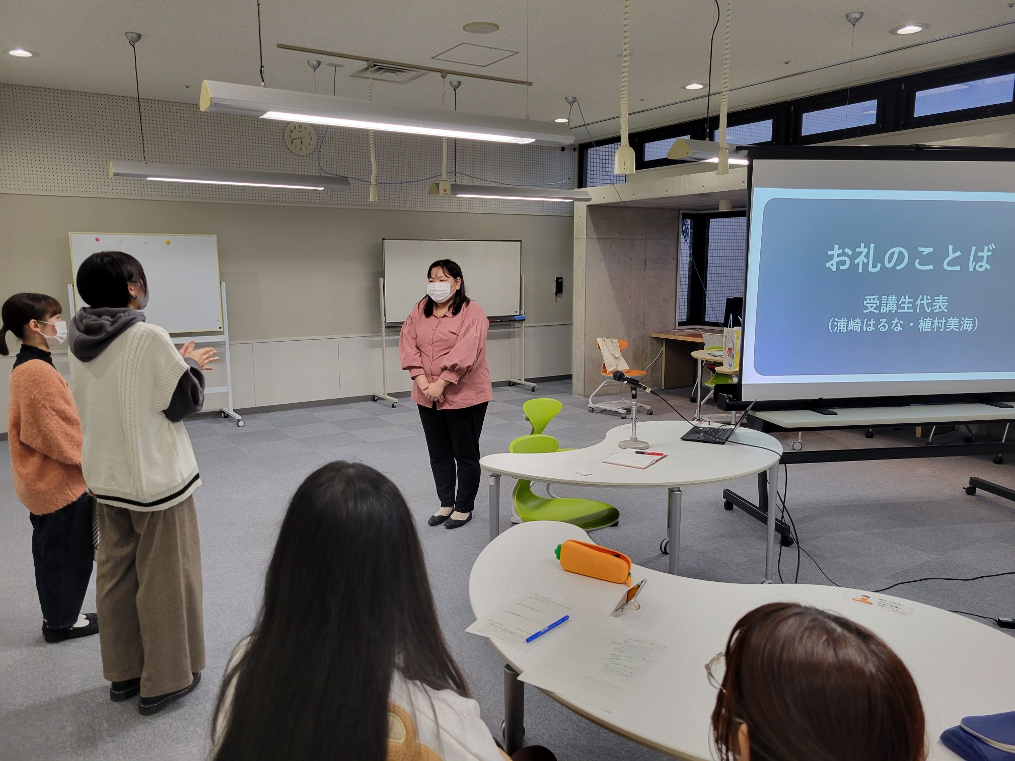 報告会の最後には、受講生を代表して4年生2名が仲田さんにお礼の言葉を述べました。
