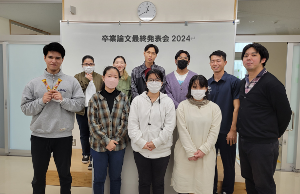 本日は都合により全員の報告はありませんでしたが、6名の卒業生の論文は我部先生の研究室の卒論集として今後編纂され、発行される予定です。