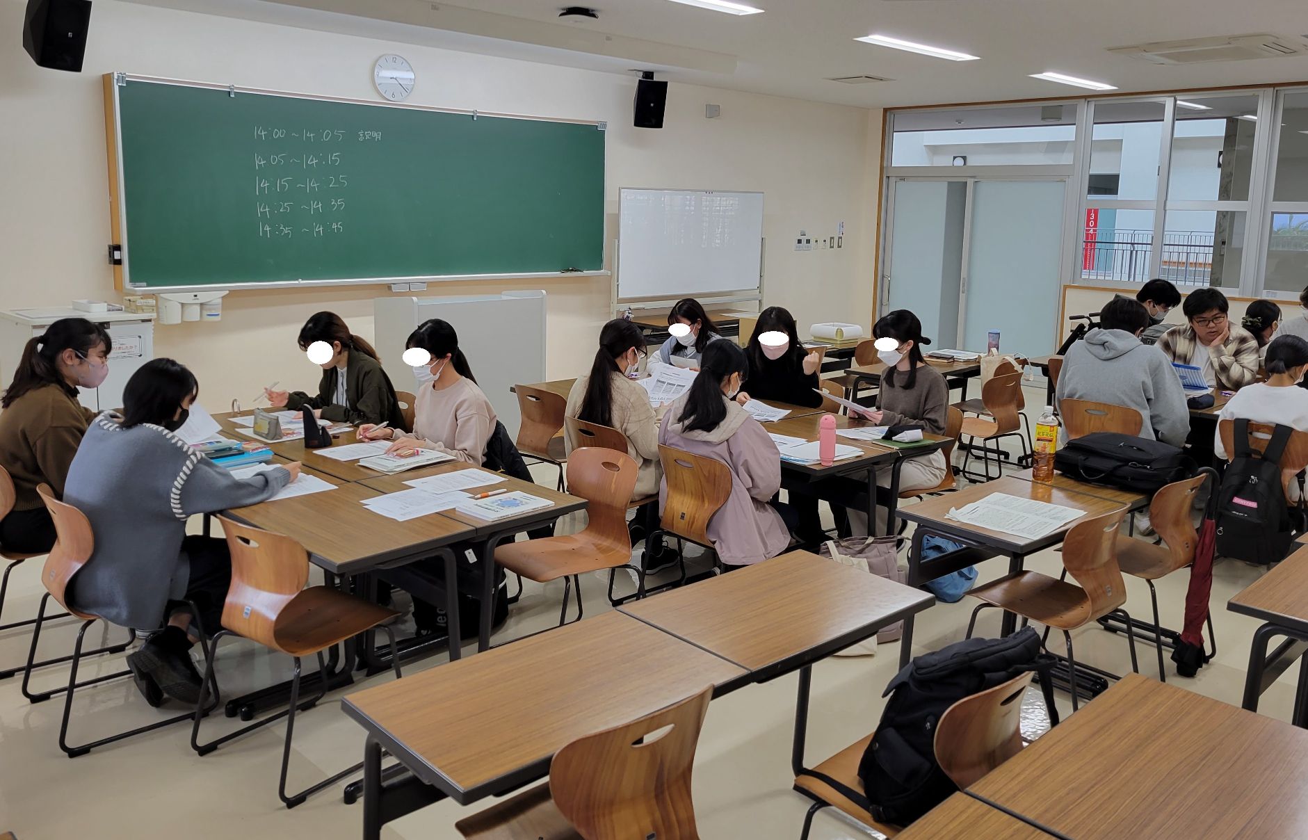 📖「前期の卒論の授業では、就活や採用試験の勉強を優先してもらえるので、3年生後期ほど卒論にかかる課題はありません。が、その分、1回1回の授業の中で、学術論文の書き方、目次章立ての方法、など、卒論の基礎を学んでいくので、授業の濃度が上がります。就活を優先して授業を休むとその分遅れるので、説明会、面接などでどうしても授業に参加できないときも、プリントを受け取りに行く、課題内容をゼミ生同士で共有する、などの努力をして下さい」