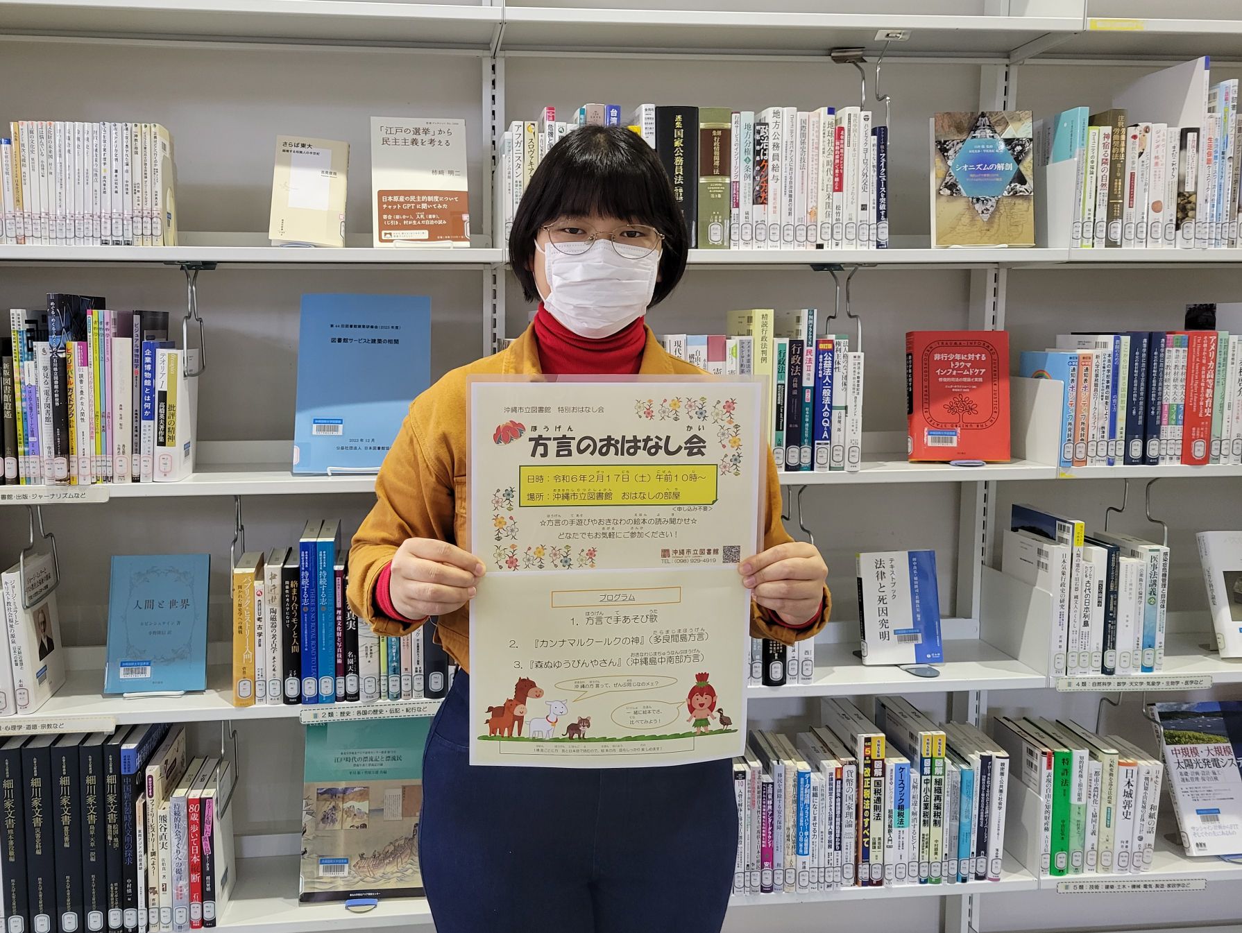 名嘉真さんが企画した「方言によるお話し会」が2024年2月17日(土)、沖縄市立図書館・おはなしの部屋にて開催されることになりました。