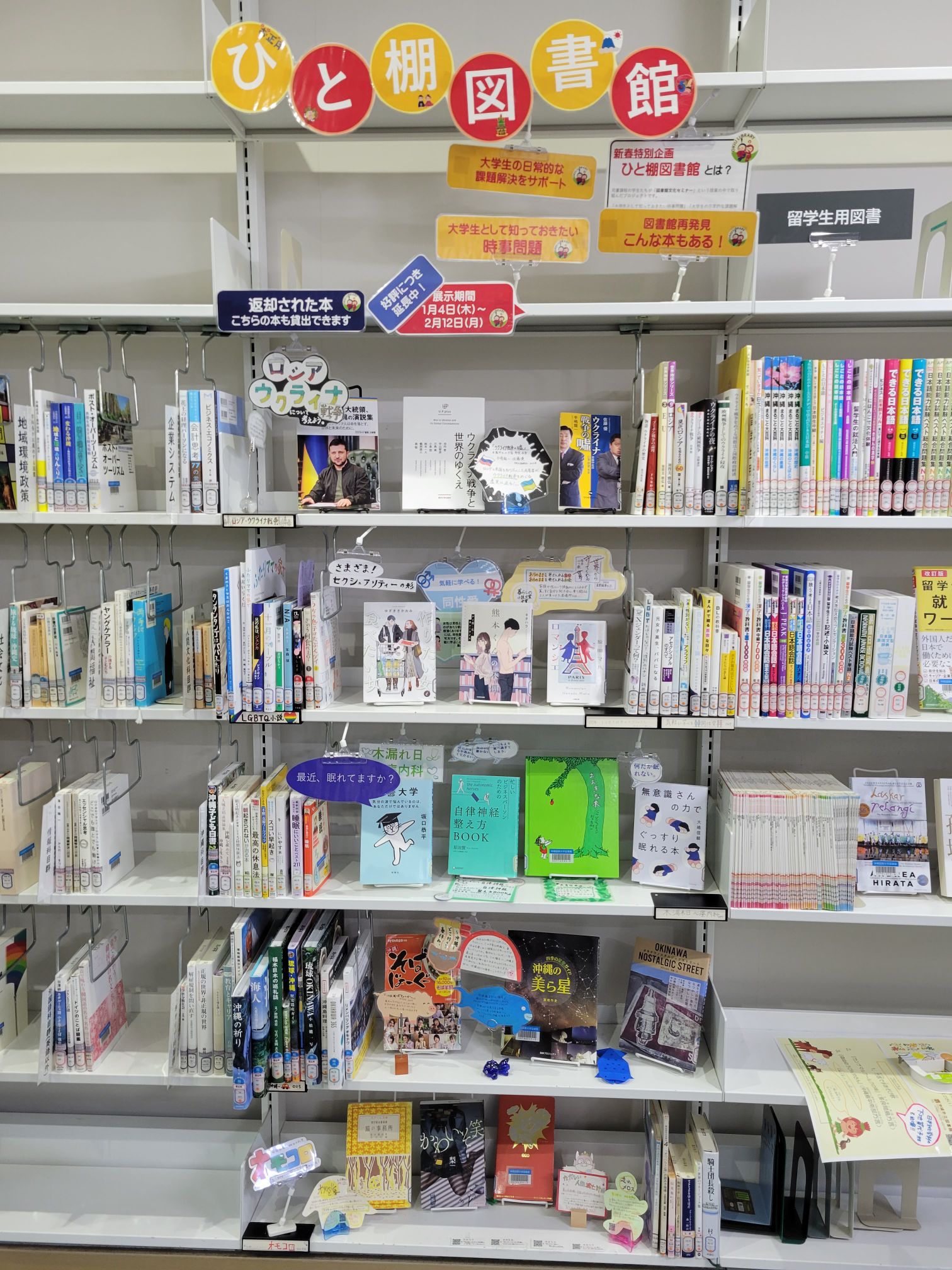 2024年1月4日から、本学図書館の新春特別企画として、司書課程の皆さんが「図書館文化セミナー」というん週授業で取り組んできた「ひと棚図書館」という展示企画。