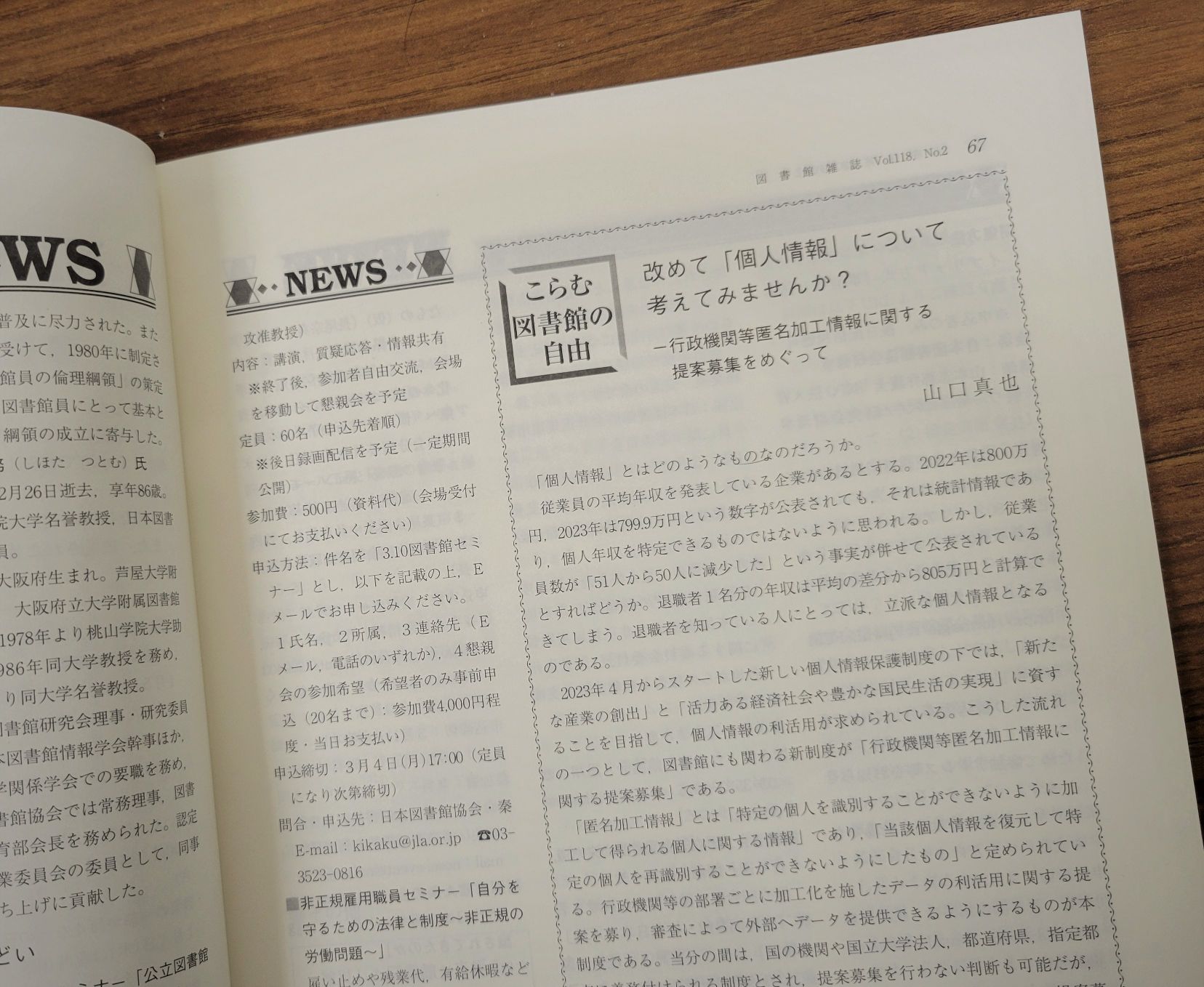 2023年4月からスタートしている新しい個人情報保護制度において、個人情報の利活用が求められるようになっていますが、図書館が管理する貸出記録、来館記録、利用者情報などを、匿名加工化するからといって、民間業者等に提供していよいのか、個人情報の定義は意外に難しく、まだまだ慎重な検討が必要、ということを問題提起する内容となっています。