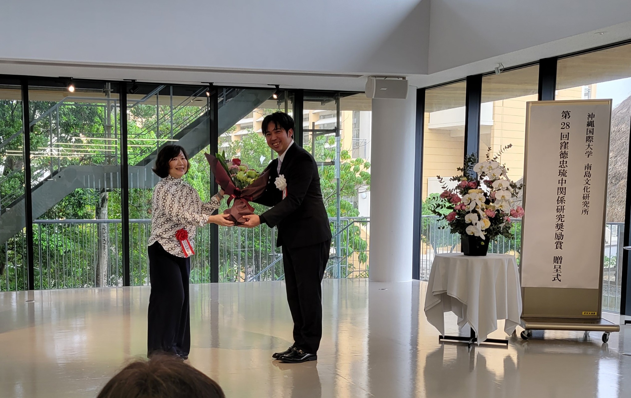 「窪德忠琉中関係研究奨励賞」は、琉球と中国(台湾を含む)の関係やその比較研究に従事する、若手研究者の研究を奨励し、この分野の研究の発展に寄与することを目的として毎年開催されています。今回は「第28回」となっていますが、26回、27回は「該当者なし」という結果でしたので、3年ぶりの受賞式の開催となりました。