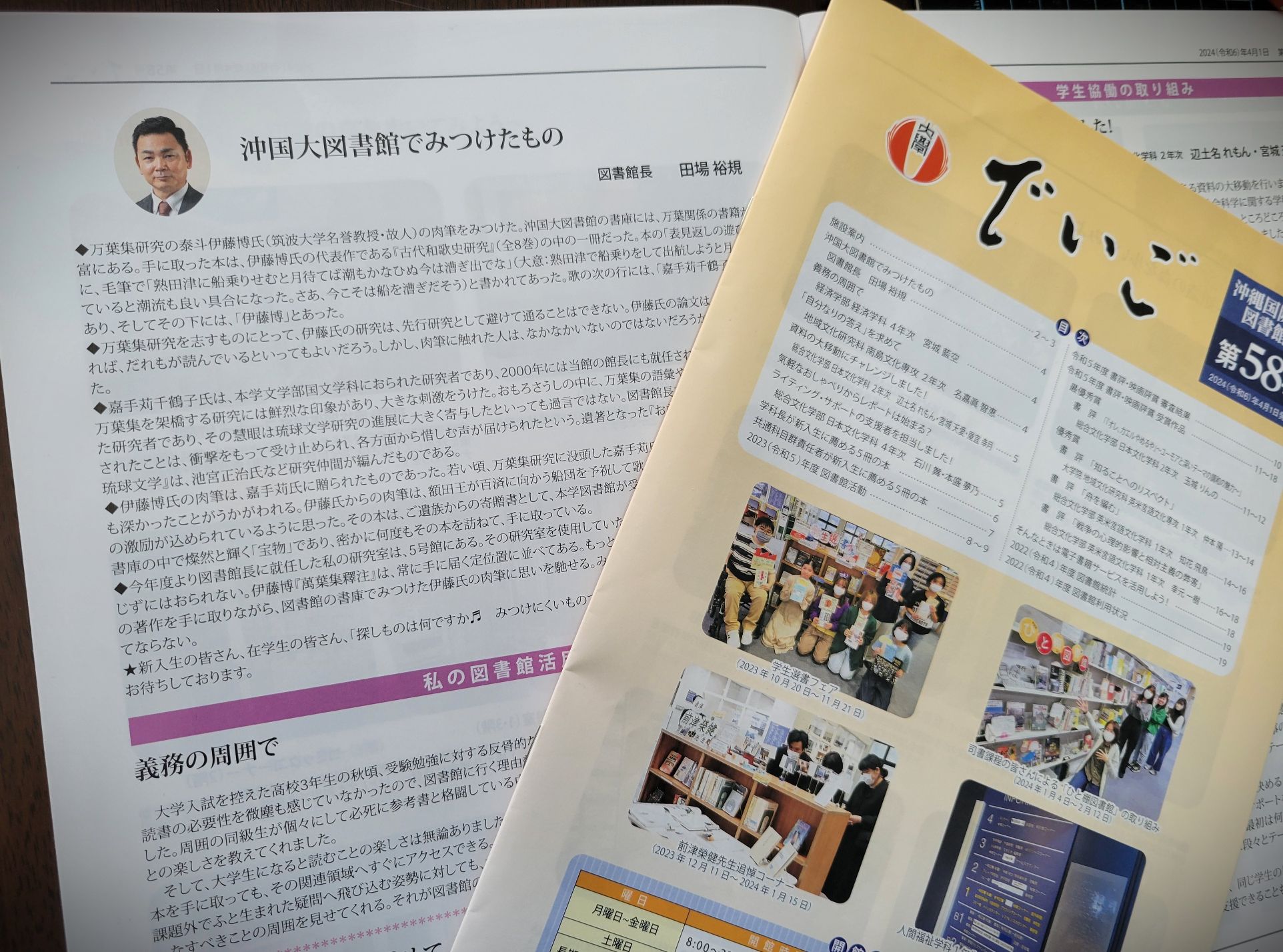 【図書館報『でいご』の最新号に田場新館長の新入生向けのエッセイが掲載されています】