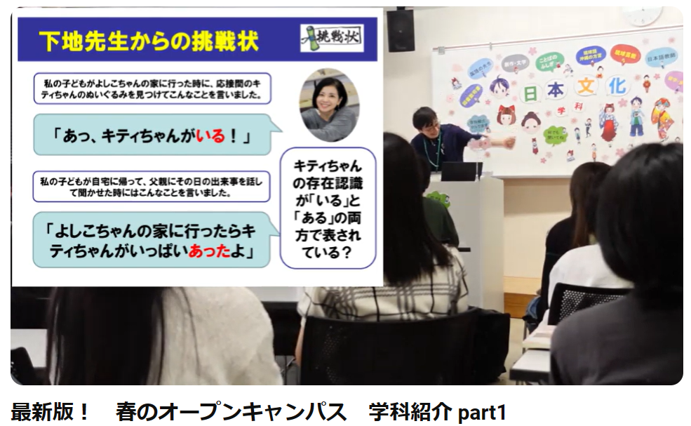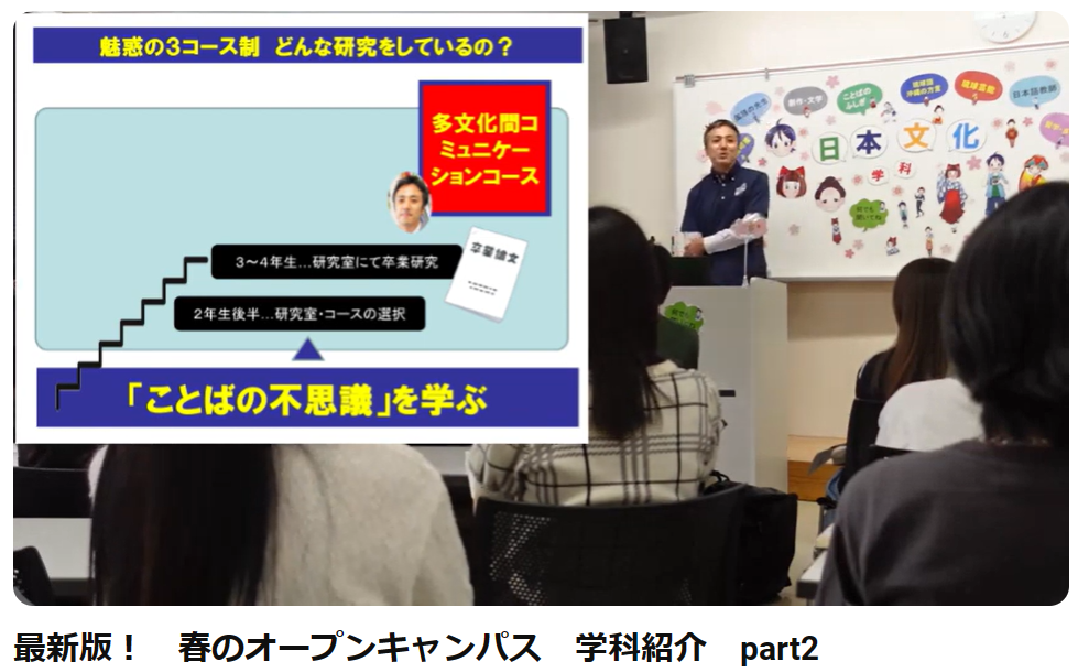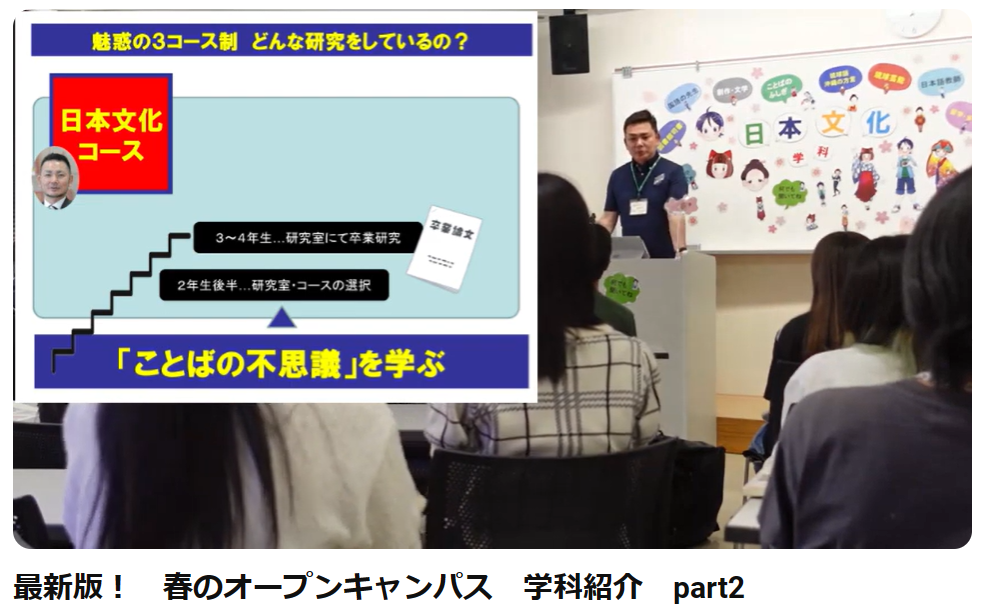 動画をご視聴いただき、日本文化学科での学びに興味を持っていただけると嬉しいです!!