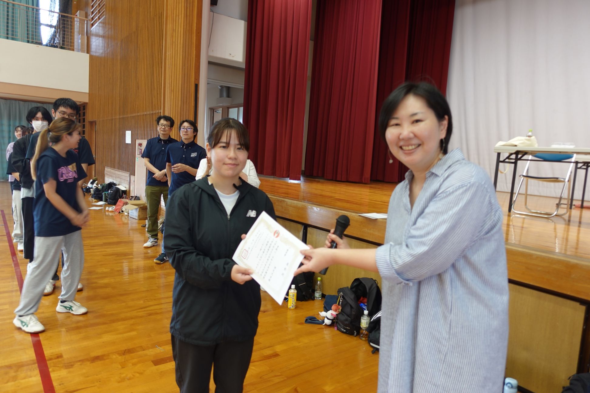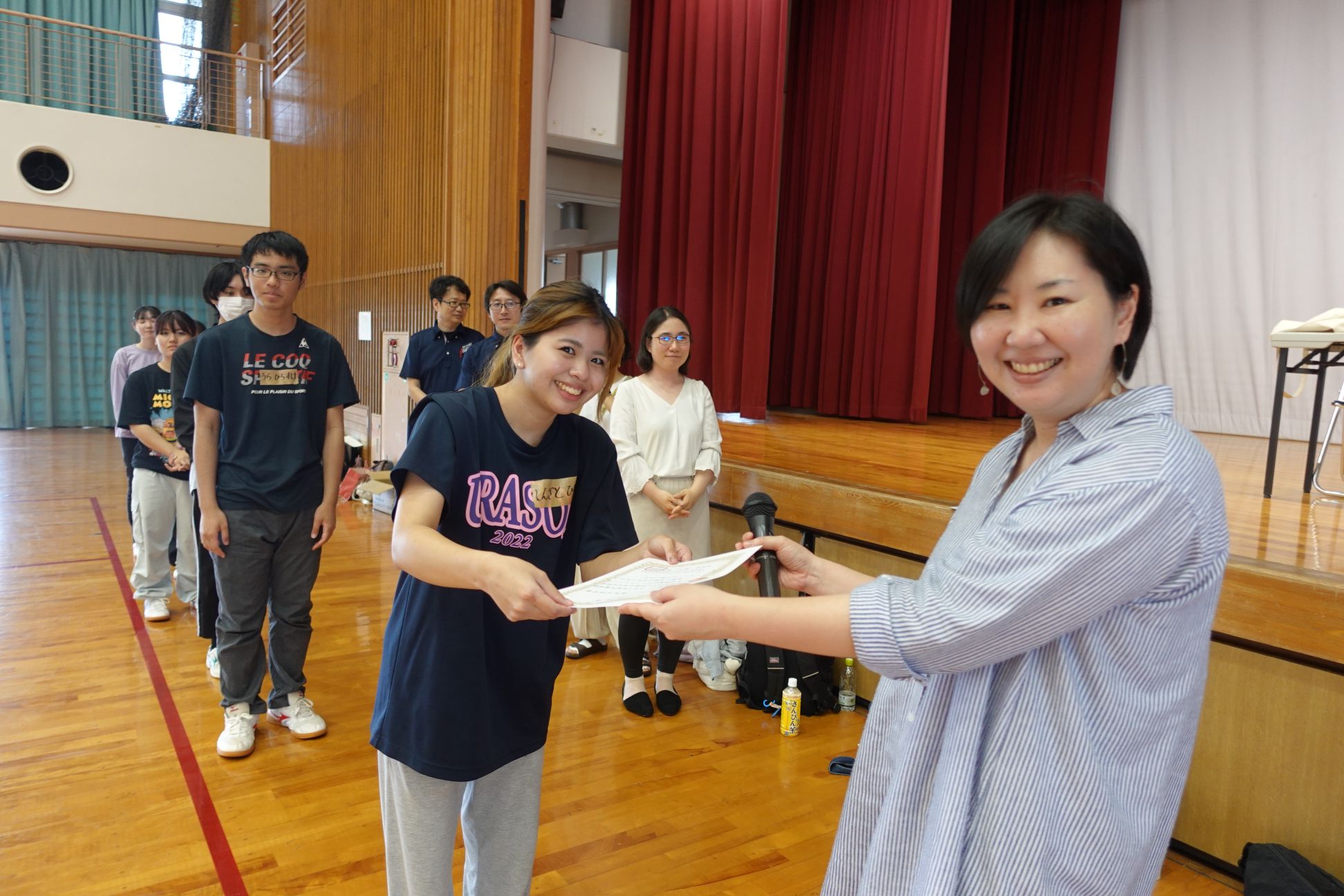 今年度は、2つの分野で両方でとても優れた作文を書いてくれた稲嶺さん、名嘉眞さんのお二人にへ村上陽子学科長から最優秀賞が贈られました。