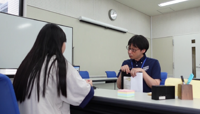 「学校司書のモデルカリキュラム」の授業の一つである「学校図書館情報サービス論」という授業では、学校司書の専門性を実践的に学ぶために、学校図書館でのレファレンスサービスを学ぶために、ロールプレイ形式を取り入れた演習も行っています。