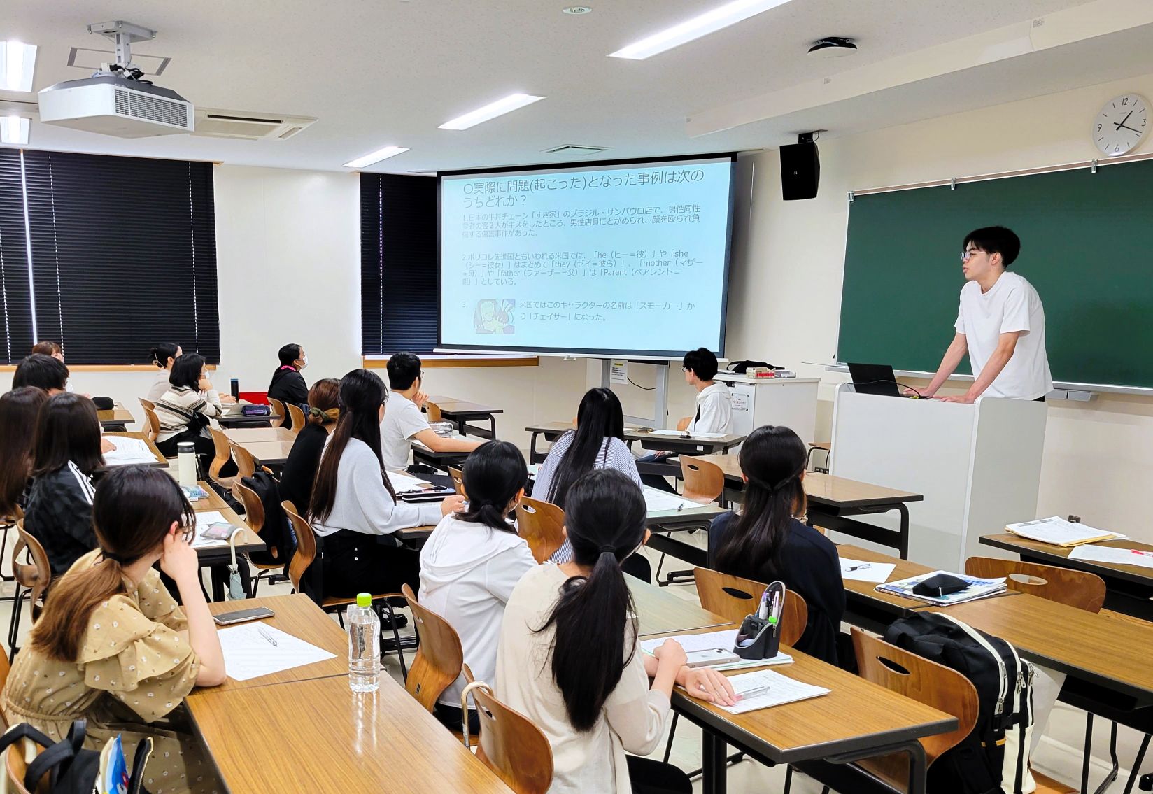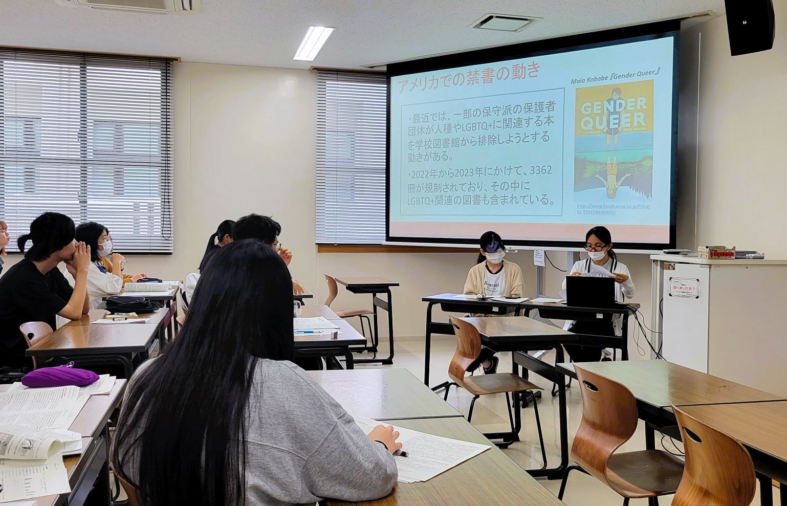 情報流通の仕組みや法的な制度、図書館や書店の社会的な役割、表現の自由と自主規制のあり方などを幅広く学ぶ文化情報学研究室では、3・4年生合同ゼミにて、5月から6月にかけて、4年生による卒業研究の中間報告を行っています。