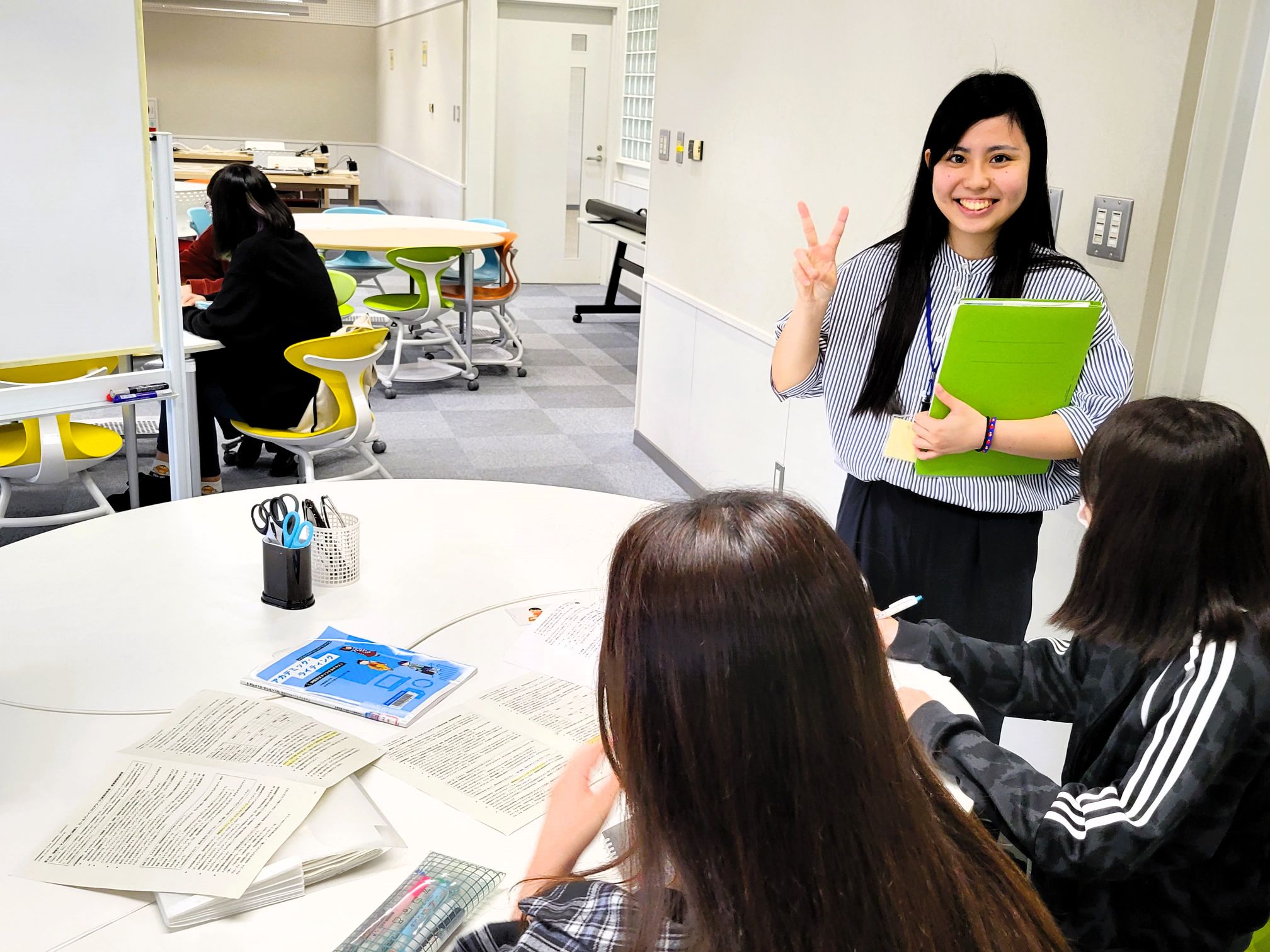 ライティングセンターでは、相談する相手が1つ年上の上級生ということで、先生には伝えにくいことも率直に相談ができるようで、なごやかなコミュニケーションを通して、苦手意識を持っていたライティングの授業がだんだんと楽しくなってる様子もみられました。