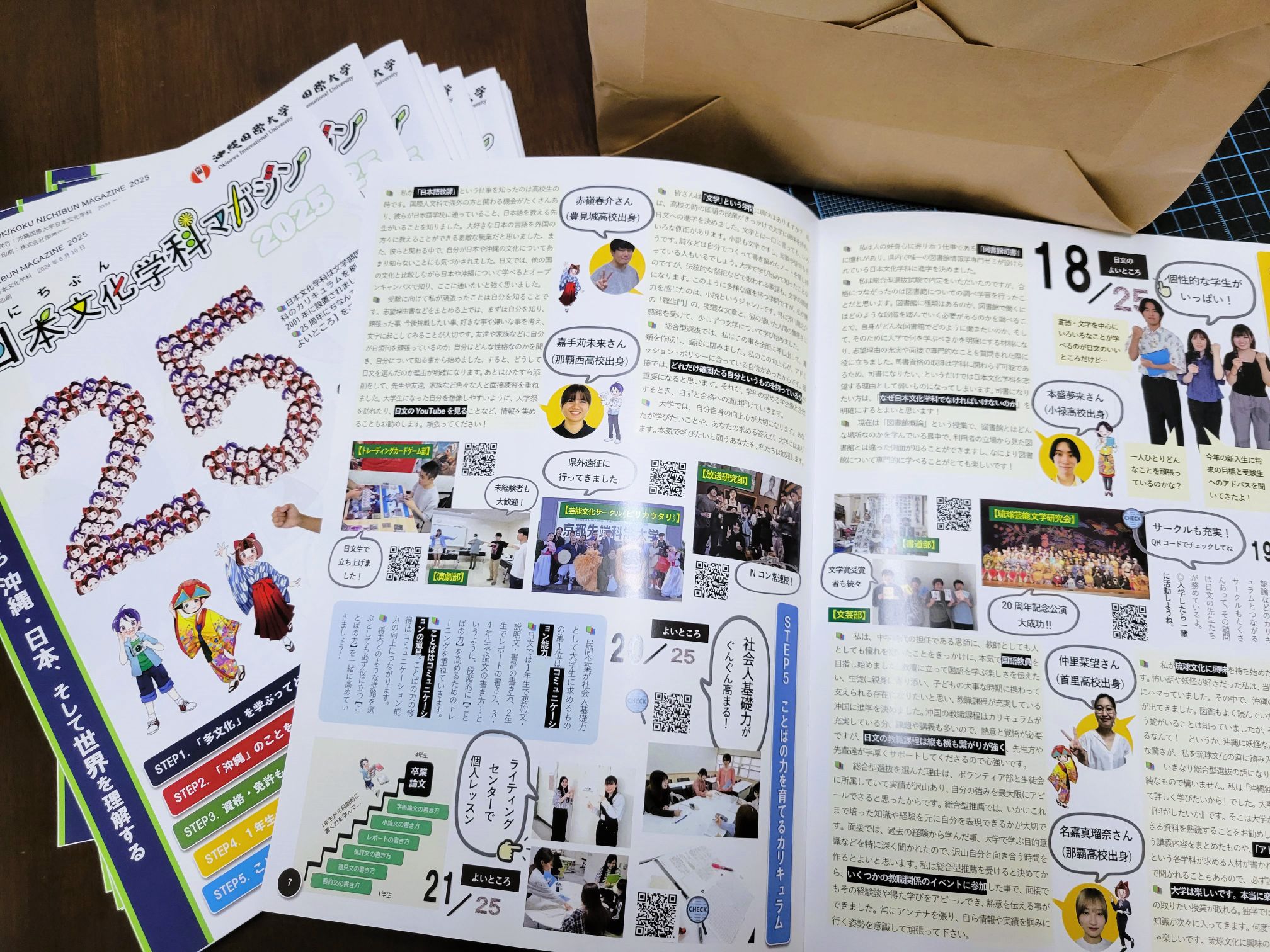 パンフレットの表紙にある「25」という顔文字は、日本文化学科が沖縄国際大学に設置されて「25周年」を意味しています。
