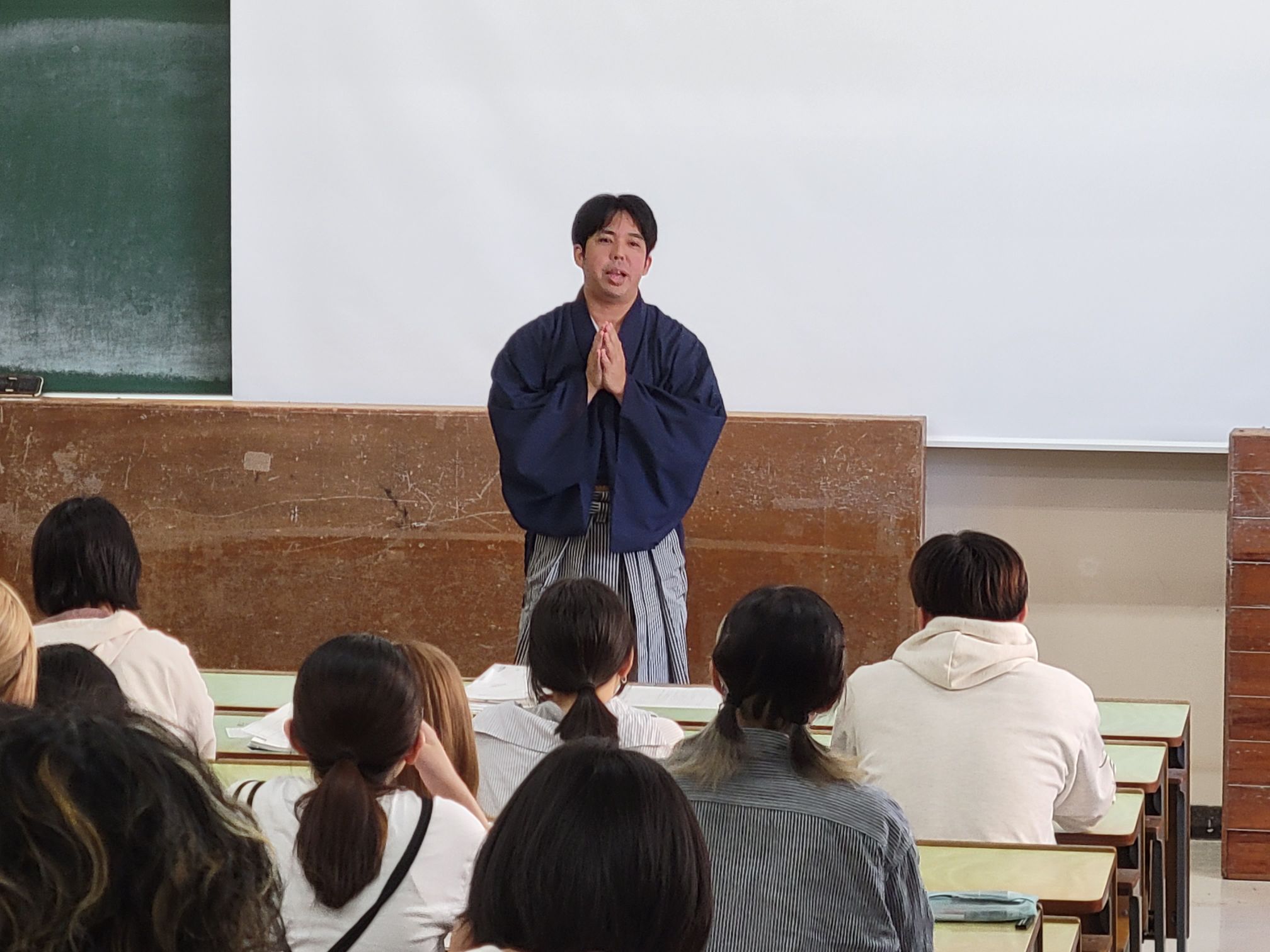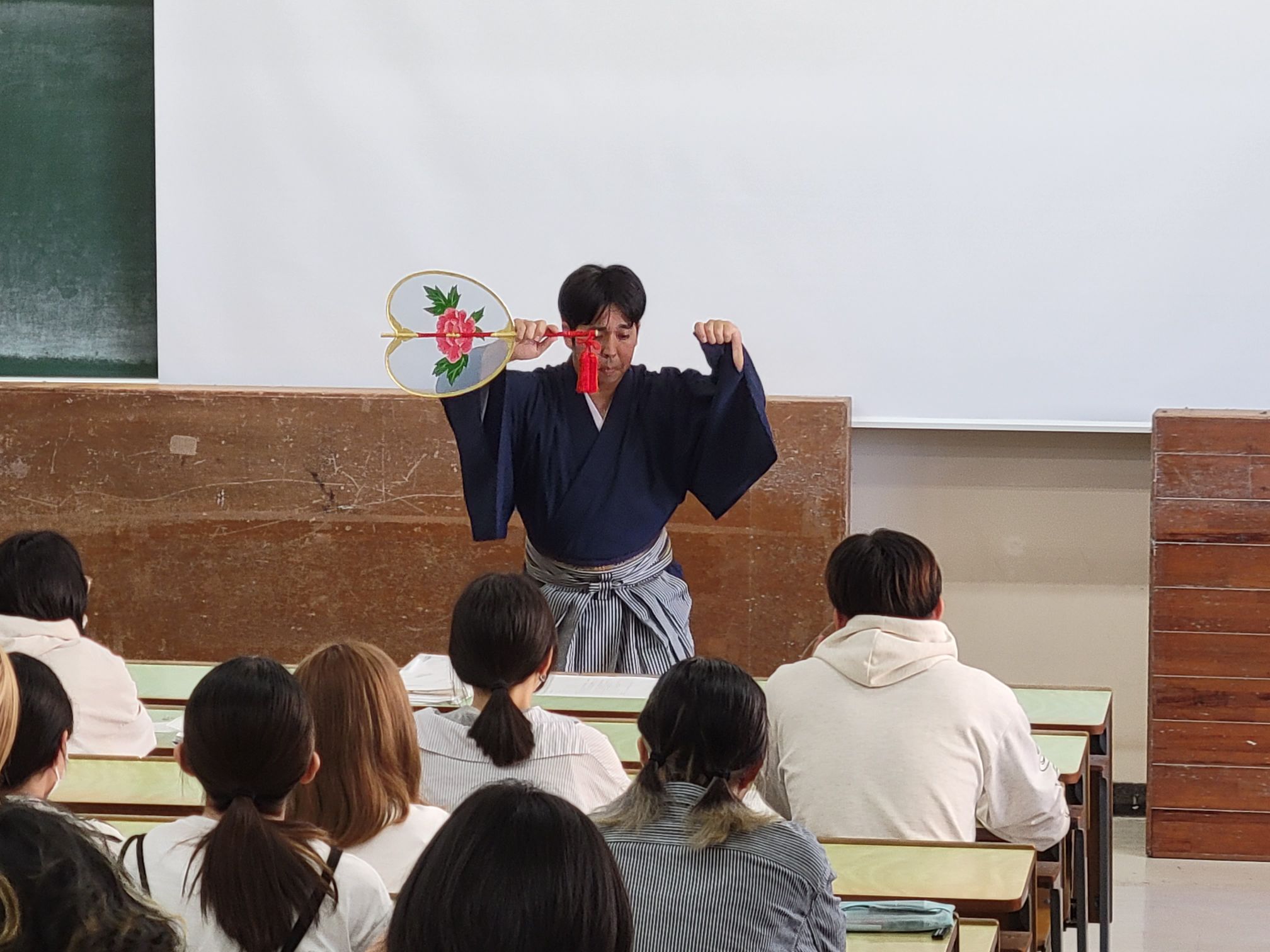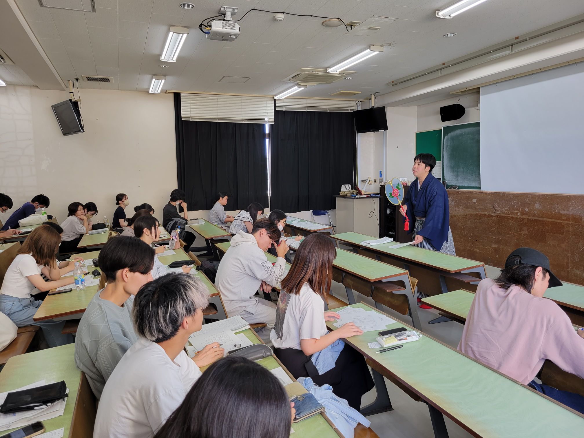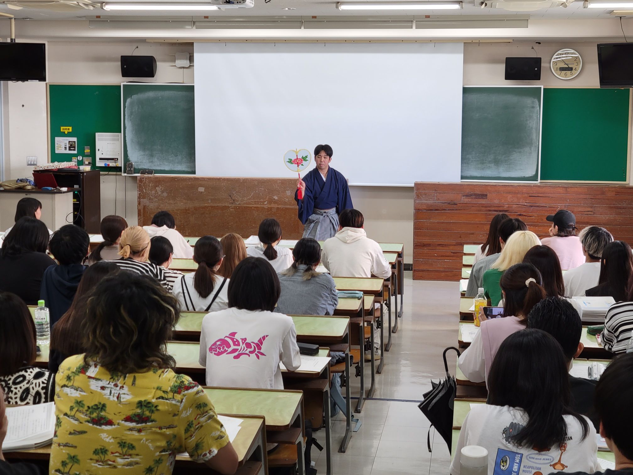6月27日、「琉球文学概論」の授業にて、我部大和先生が素踊り(化粧なし・稽古着)で、古典女踊「作田」を披露しました。