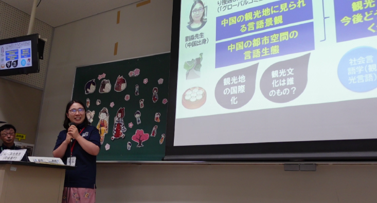 今回の説明会では、受験生のみなさんのイメージを少し広げてもらうために、全体の司会進行役の山口先生の他に、多文化間コミュニケーションコースの奥山先生、劉先生にも登場してもらって、日本語教育や中国語・中国文化の勉強を通して世界とつながる学びについて紹介してもらいました。