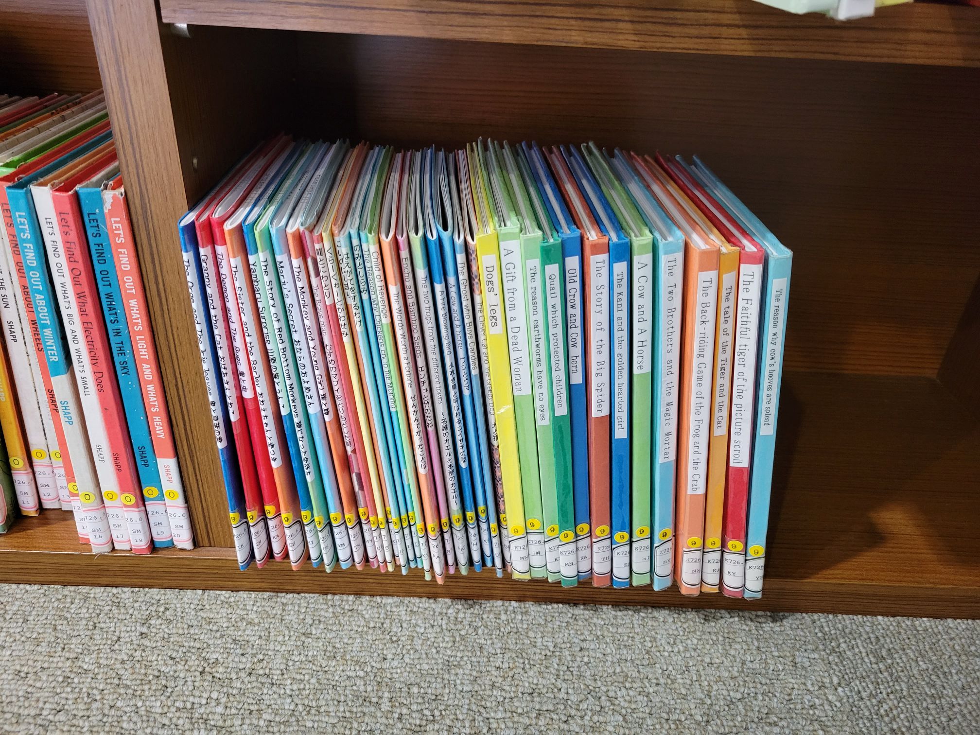 この日は、後期の授業の打ち合わせで久しぶりに図書資料室にお伺いしたのですが、過去に寄贈した冊子約40冊にブッカーをかけて、背表紙にタイトルシールを入れていただき、とても大切に利用していただいている様子を見せていただきました。また、図書室でこの絵本を手にした利用者や海外の研修員の方などからは「どこに売っているんですか?」「お土産に持って帰りたい」という声も届いているというお話もおうかがいしました。