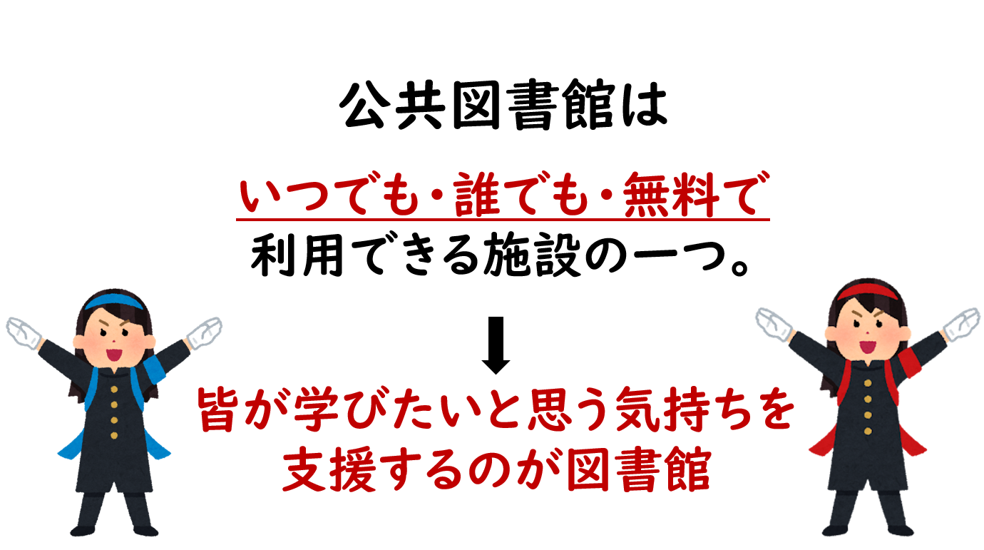 学生たちもこの考えに共感して、卒業後に進学だけでなく、社会に出る子どもたちがいることも想定しつつ、読者はもちろん、ビジネスの場面でも公共図書館を活用できること、図書館が様々な支援を行っていること、公共図書館の後ろには国立図書館という強い味方がいること、進学する子どもたちには学校図書館と公共図書館をこんな風に使い分けてほしい、という素敵なメッセージを送ってくれました。