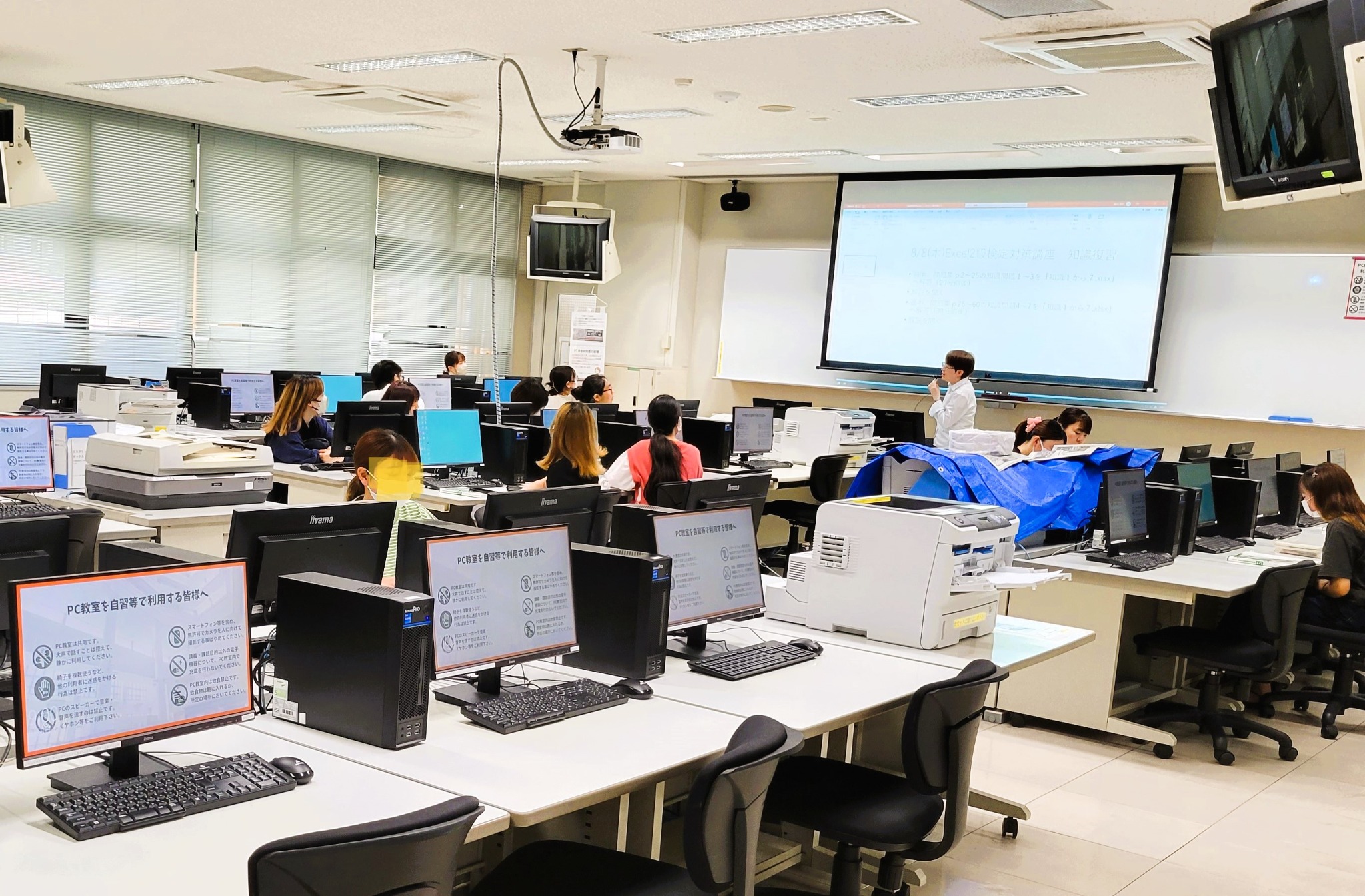 受講生の多くは、昨年度の1年生の春休みに、Excelの3級の資格を取得していますが、2級となるとさらにレベルアップして、使用する関数の種類も増加します。かなり難易度の高い検定試験ではありますが、担当の先生によると、「日文の学生さんたちは真面目に授業に取り組んでくれていますし、授業時間中の理解度も高いので、きっと大丈夫でしょう!」との心強い言葉をいただきました。