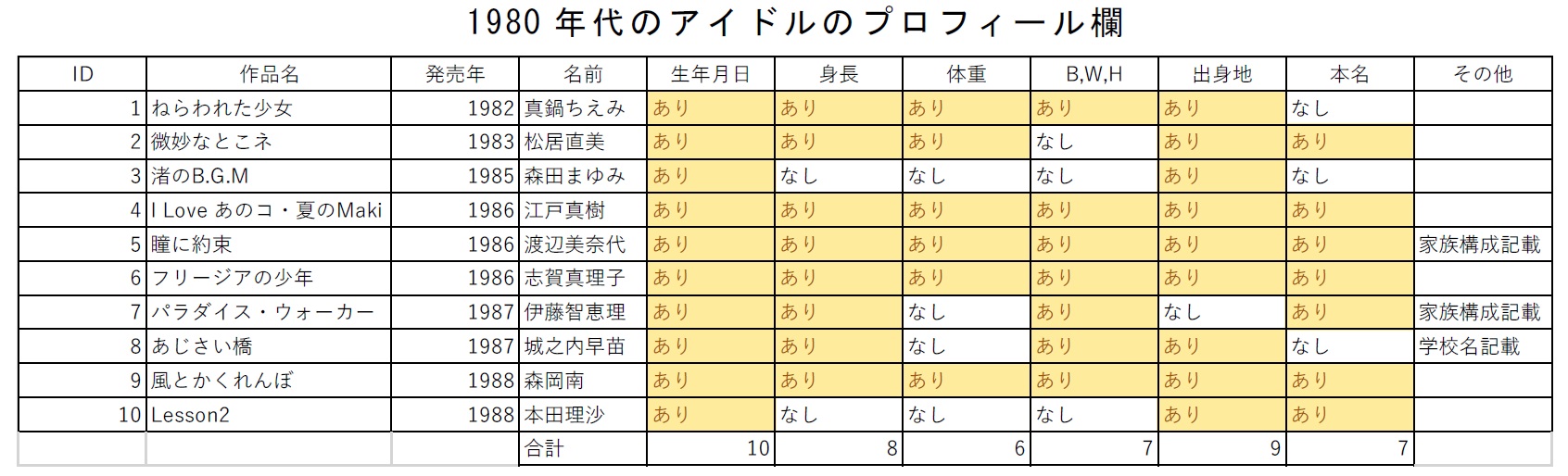 「アイドルのプロフィールにみる個人情報の記載状況」