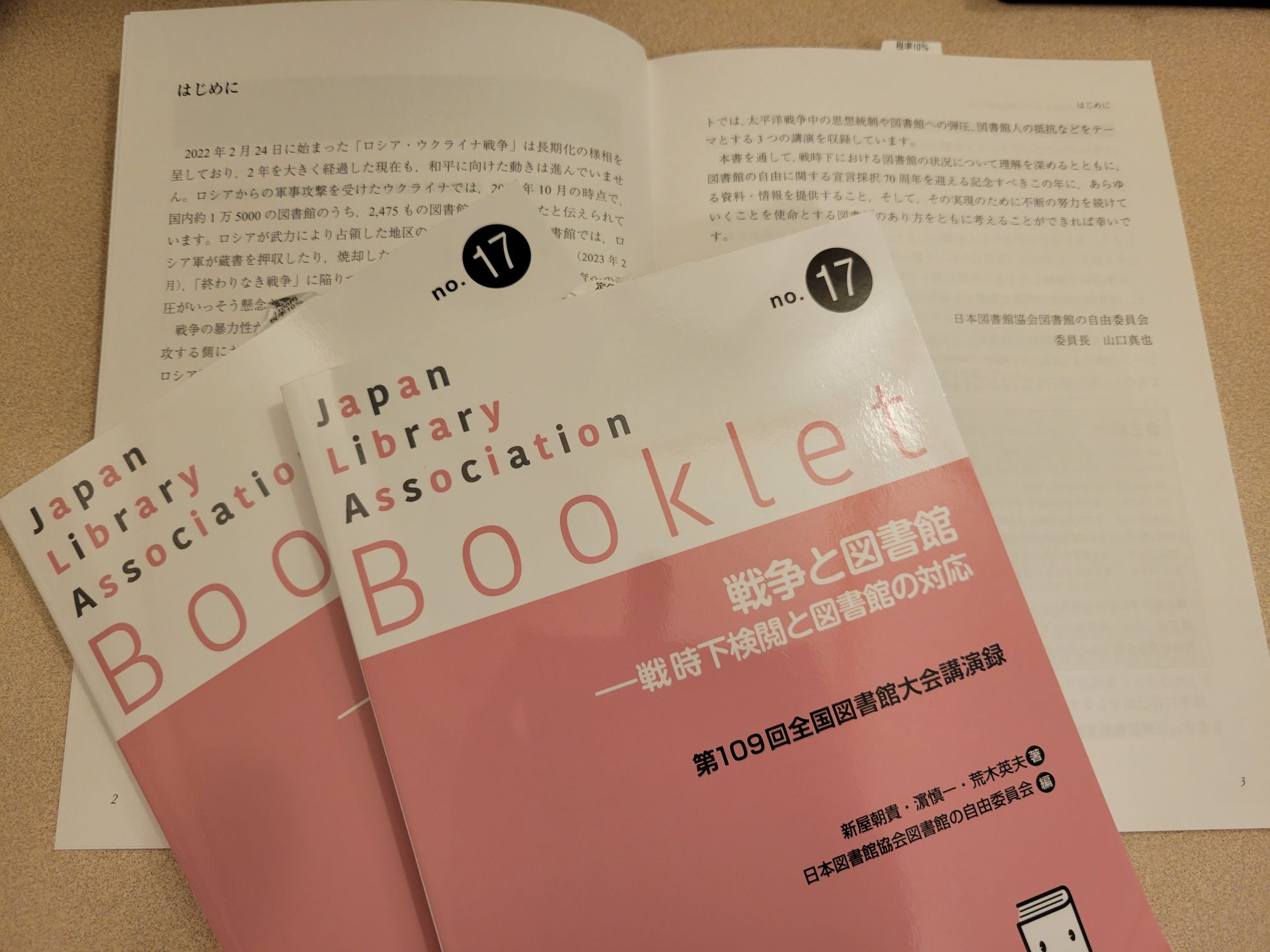 そして、その記録集として、2024年9月に自由委員会が編集したものがブックレット『戦争と図書館:戦時下検閲と図書館の対応』(JLA Booklet No.17)です。