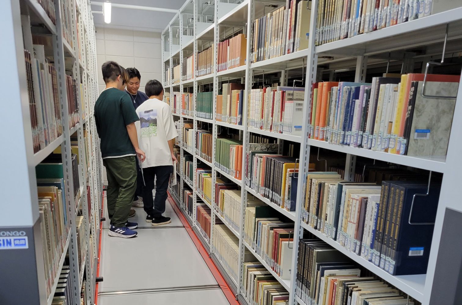 受講生21名が3つのグループに分かれて、地下書庫にある絵本を探索しつつ、学生たち同士で子どものころに読んだ絵本を紹介し合ったりして、図書館の地下書庫の複数個所でミニお話会が繰り広げられました。(騒がしくしてしまってごめんなさい💦)