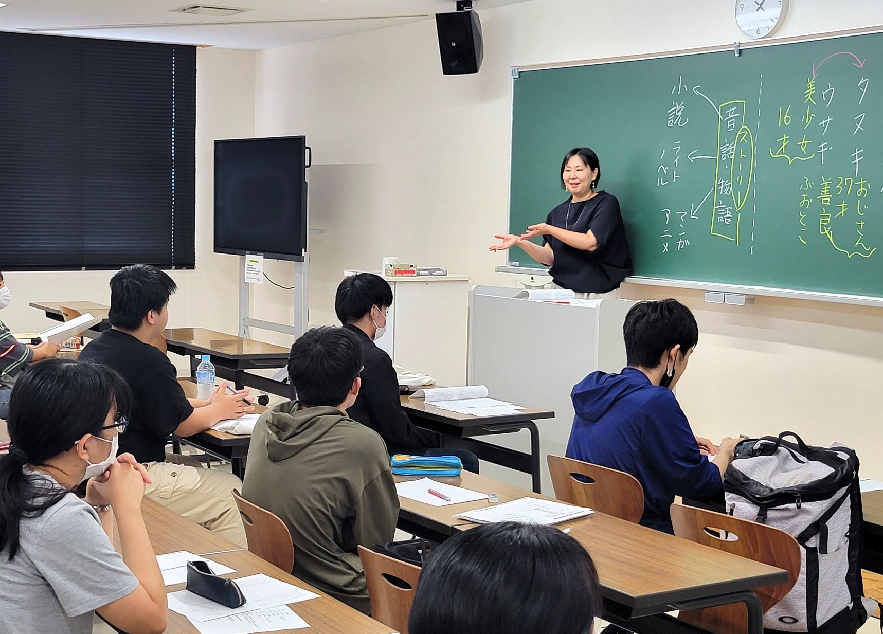 日本文化学科では、3時間目に開講されている、近現代文学ゼミ、古典文学ゼミ、琉球語・文学ゼミの3つを開放して、高校生の皆さんに参加してもらいました。
