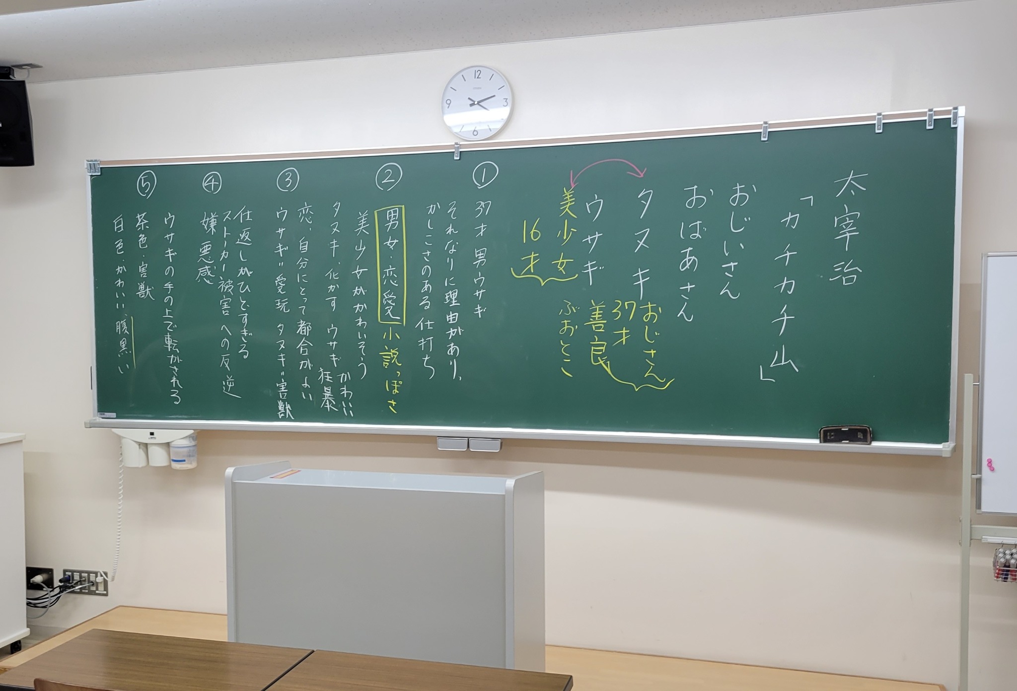 教員からは、もしもウサギが37歳のおじさんで、タヌキの方が16歳の少女だったとしたら物語の印象はどう変わるかを考えてみてね、という課題も出しました。