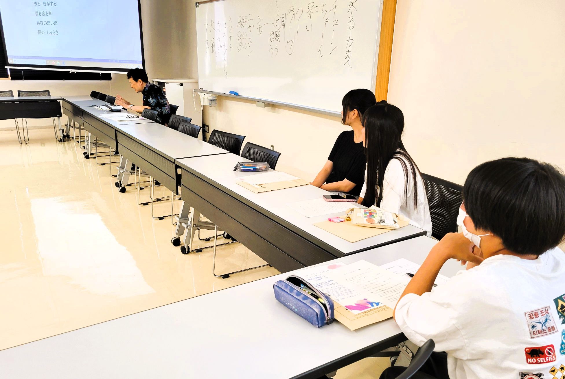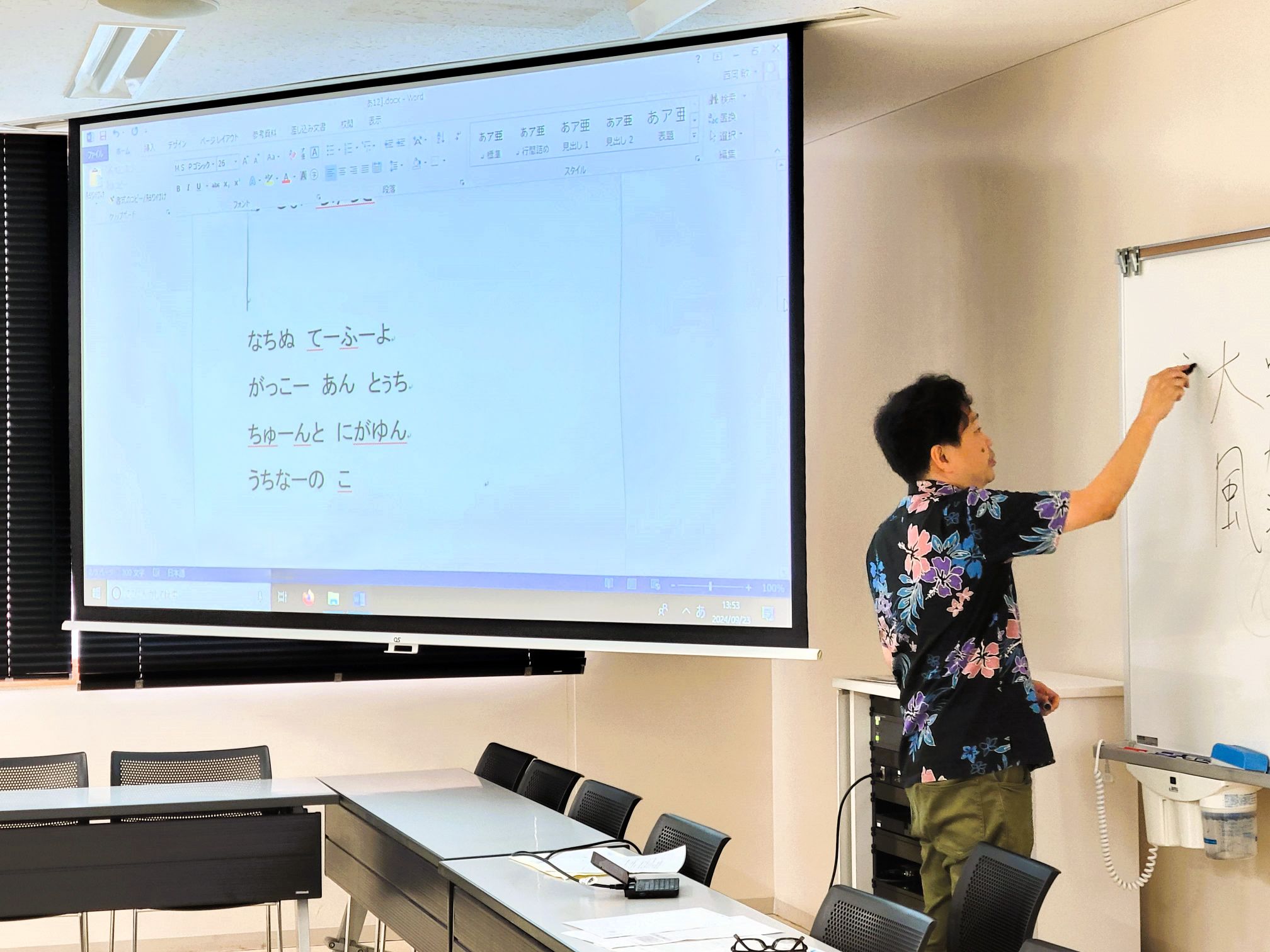 西岡敏先生が担当する琉球語・琉球文学ゼミでは3人の高校生のみなさんを迎え、「ウチナーグチで琉歌をつくろう(入門編)」というタイトルで、ゼミ生といっしょに琉歌を創作するワークショップ型の授業を行いました。