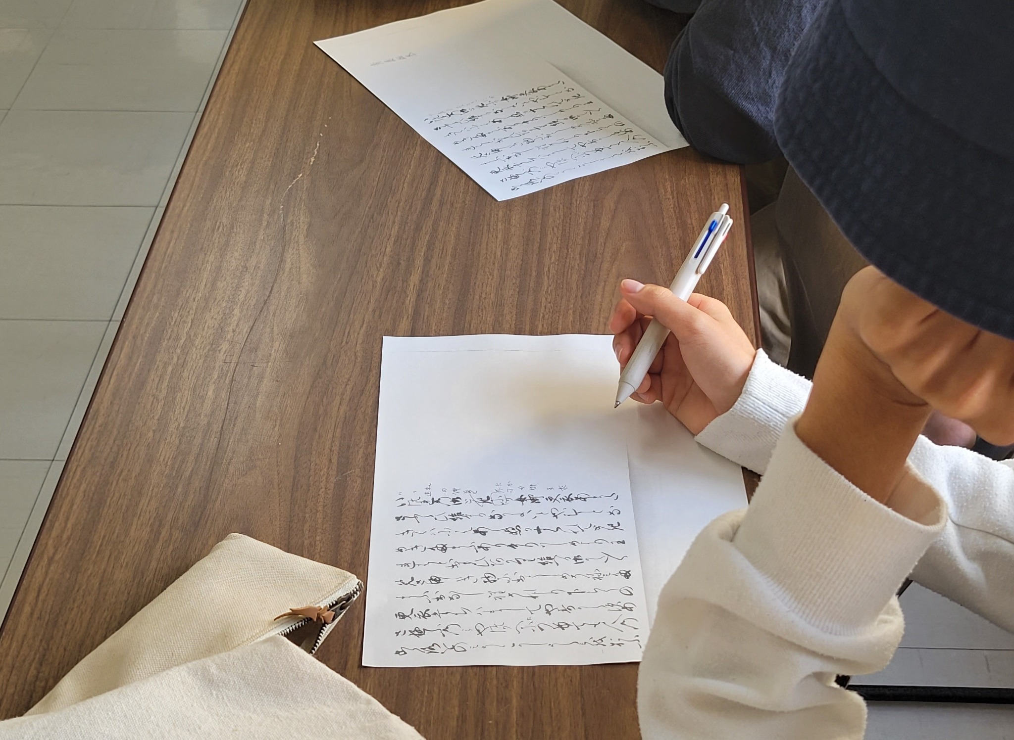 この日、教室に来てくれた高校生の皆さんは文学に関心があったり、教職課程に興味があったりする皆さんでしたが、ふだんの高校の古典授業でみる文学作品と、崩し文字で書かれた作品は全く異なる印象があったようで、「ぜんぜん読めない!」「あ、でもよく見たら確かにそう!」「わかった!」という驚きや喜びの声が聞こえてきました。