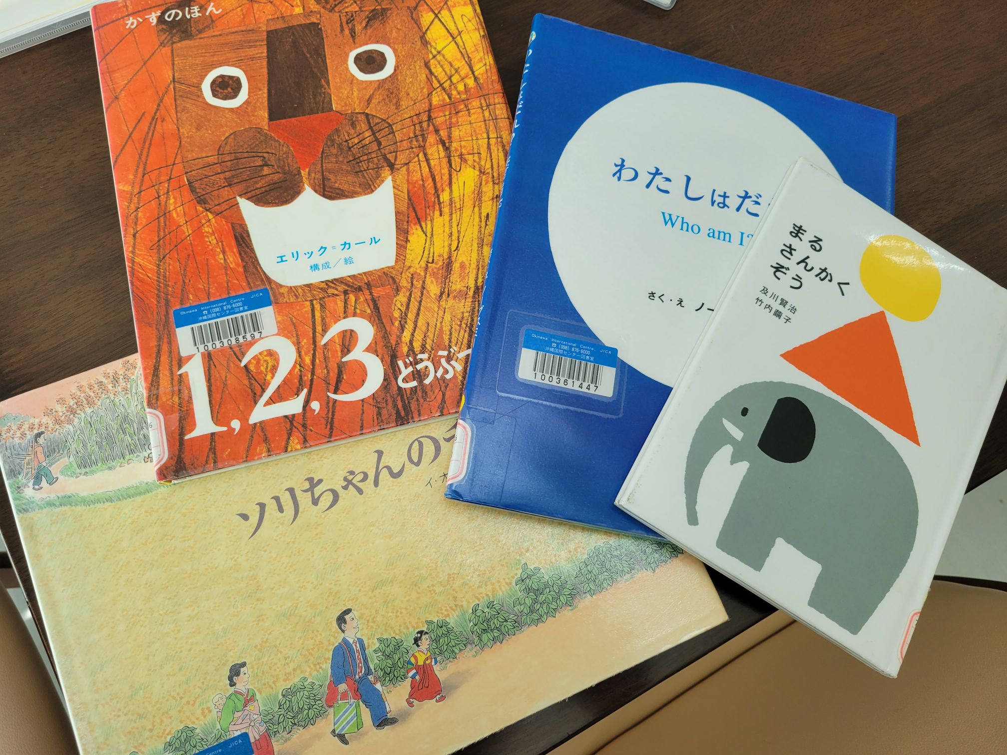 世界のおはなし会で人気のエリックカールの絵本や、簡単な日本語で物語が進む絵本、ほかにも、韓国の話者の方がいるということで、韓国で有名な絵本(日本語訳版)なども選んでみました。