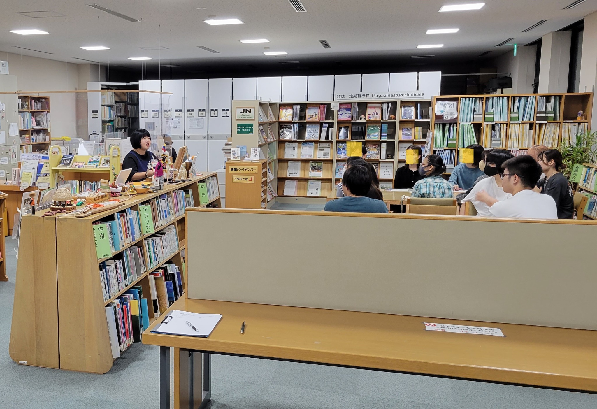 島尻さんからは、図書館での「おはなし会」という活動が子どもたちの心の成長にどのように役立つのか、そして、図書館の多文化サービスの一つとして「おはなし会」を開催する意義はなにか、など、司書を目指す学生たちにとって大切なこともたくさん教えていただきました。