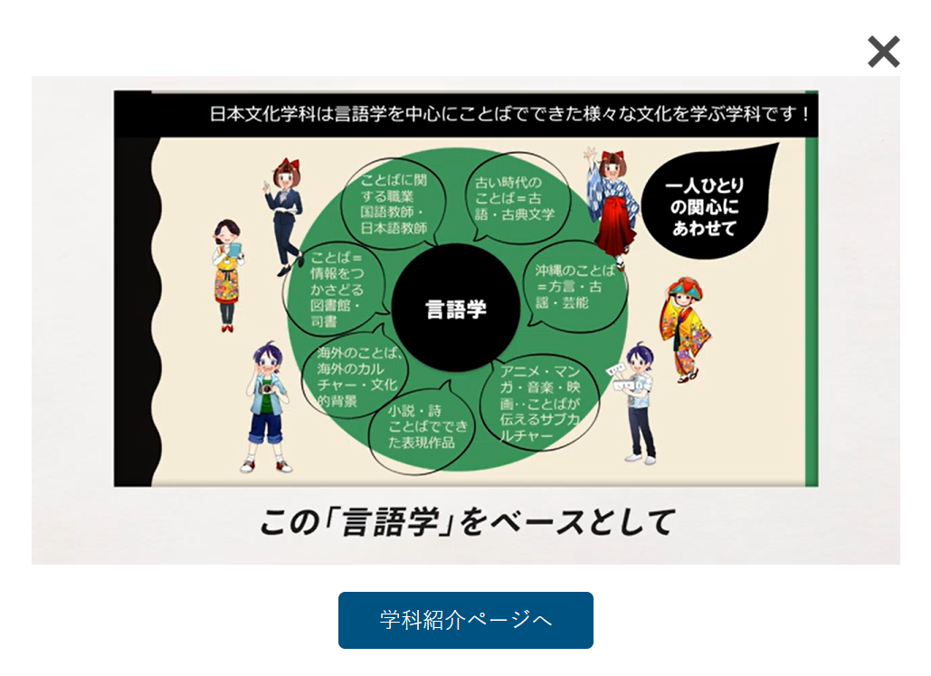 動画の中に字幕もついていますが、動画を撮影するときに使ったシナリオが残っていますので、動画の中の画像をご紹介しつつ、こちらでも日本文化学科のアピールをさせていただきます!