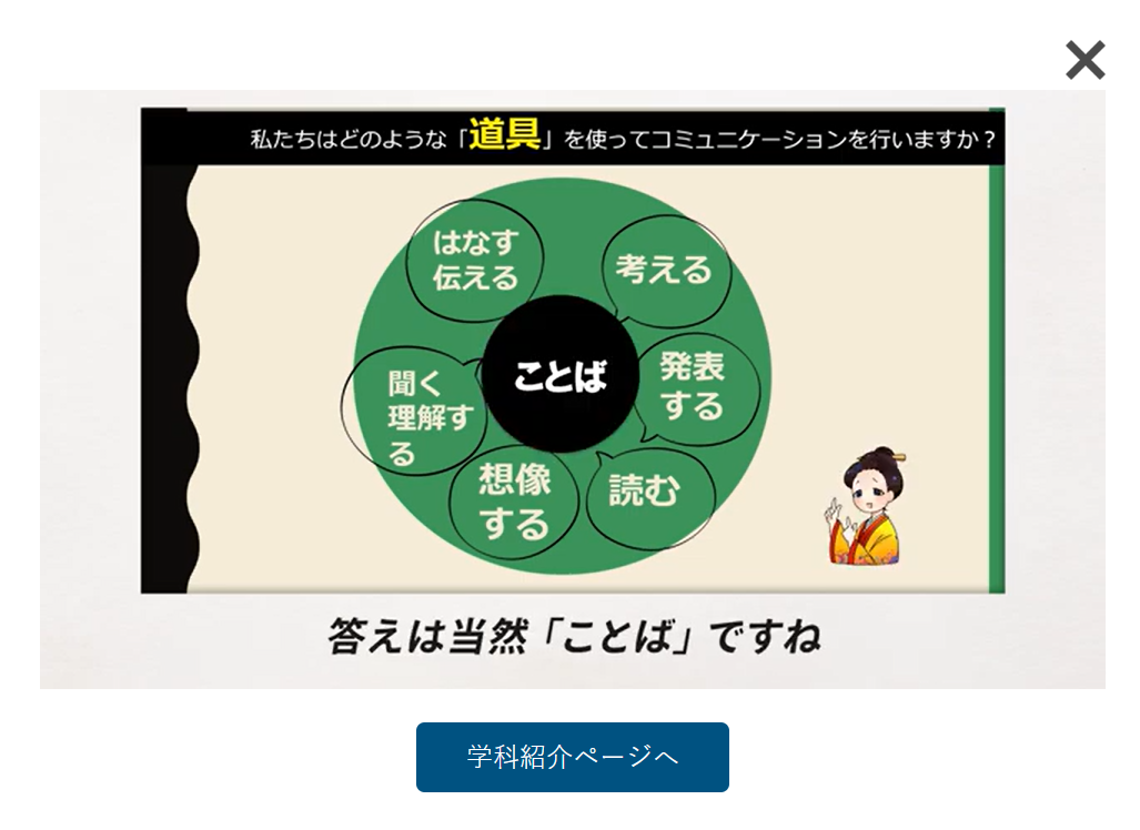 「日本文化と多文化の交差点」というテーマで、日本語・言語を学ぶとはどういうことなのか、日本文化学科では日本のことだけを学ぶのか、いやいやもっと広い世界線での学びがまっています!、ということをクイズ形式で、優しいトーンとやさしい言葉でお話していただいています。