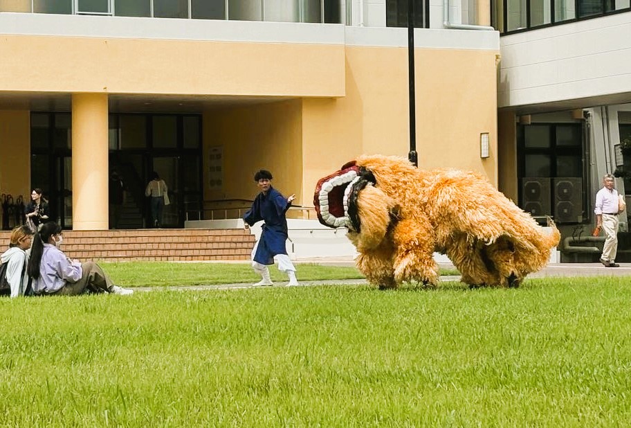 日本文化学科で多文化間コミュニケーションコースの授業を担当している奥山貴之先生が顧問を務め、日文生も多く所属する、芸能文化サークルピリカウタリのみなさんが、「秋のサークル紹介」の出し物として、後期の授業がスタートした初週の昼休みの時間を利用してパフォーマンスを披露しました。